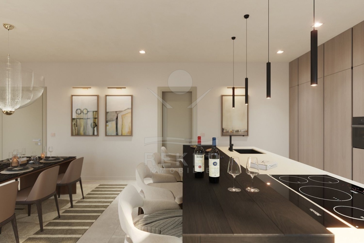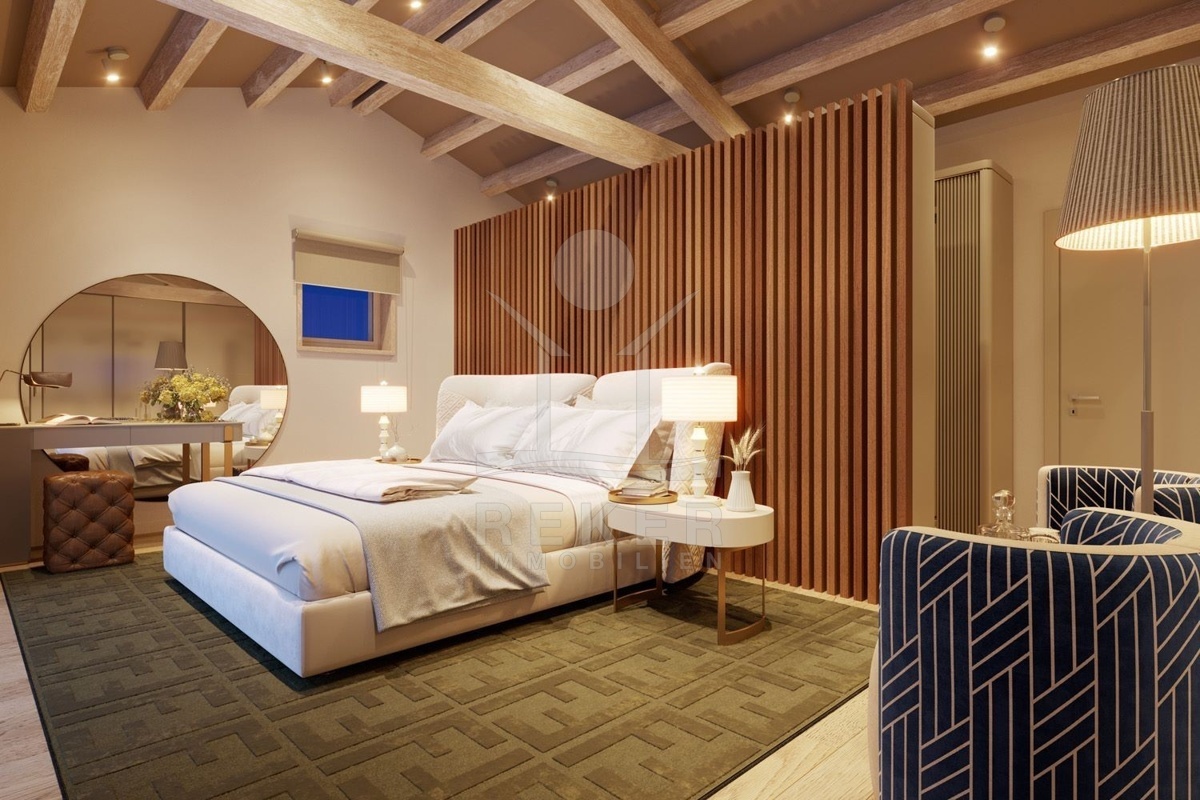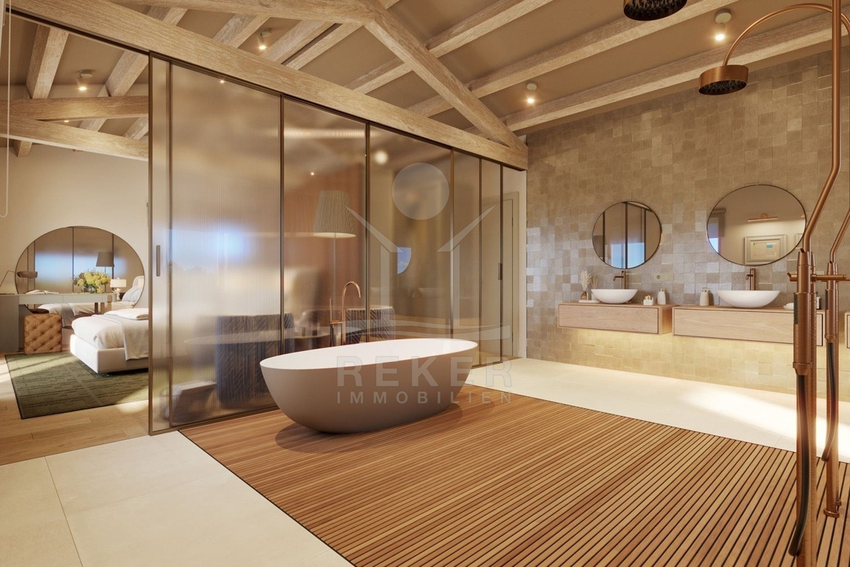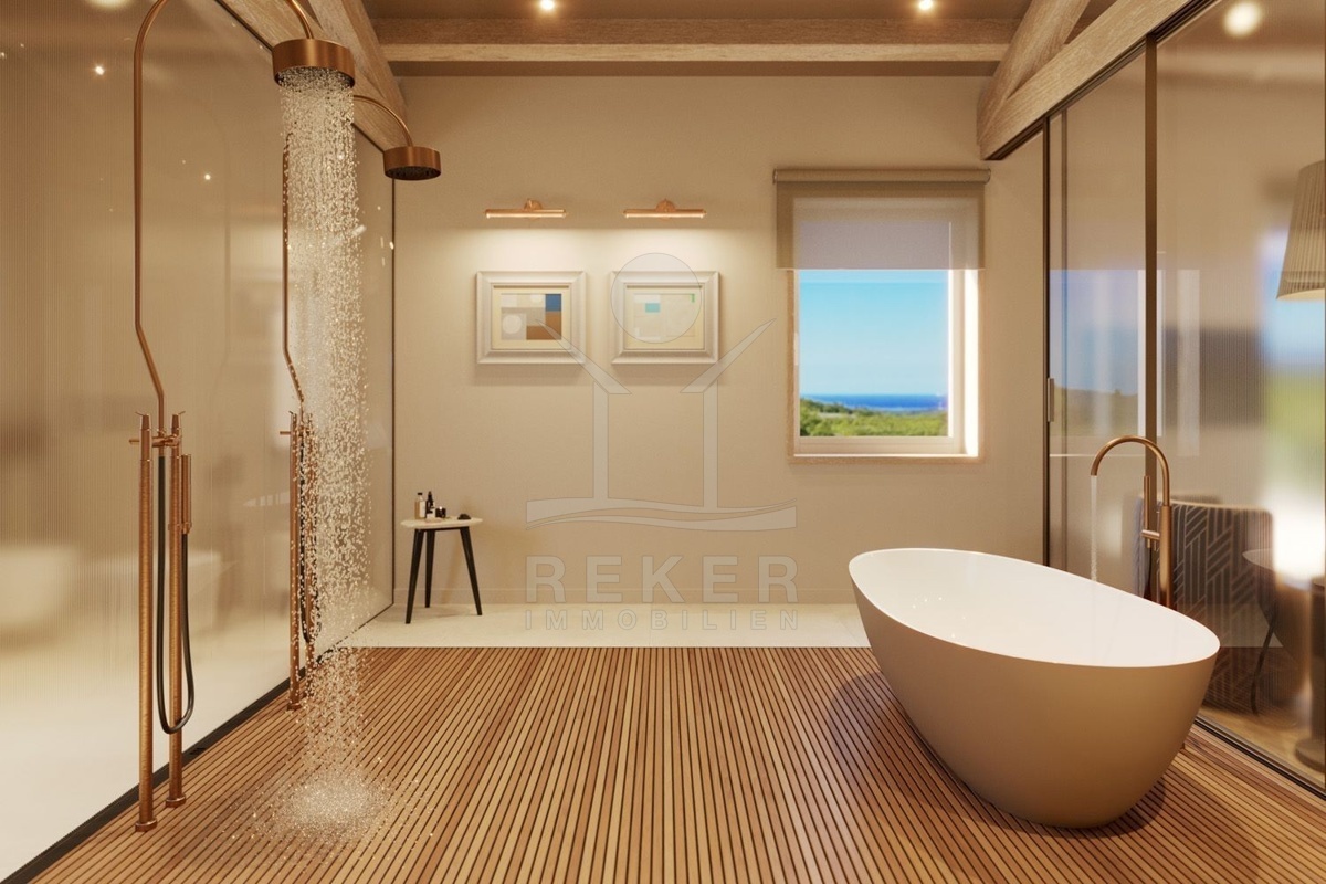 Das Anwesen befindet sich auf einem großzügigen Grundstück von 1.736 m² in autochthonem Baustil und einer Westausrichtung. Mit einer Gesamtfläche von 388 m², verteilt auf 2 Etagen und ist unterkellert, es handelt sich um ein Neubau-Projekt, das im Herbst 2023 beginnen wird. Die Villa wird mit modernster Technologie ausgestattet sein, darunter eine Wärmepumpe, eine Alarmanlage und Videoüberwachung sowie einen Aufzug. Genießen Sie den traumhaften Meerblick von jedem Zimmer aus und entspannen Sie im Außenbereich auf der wundervollen Terrasse.