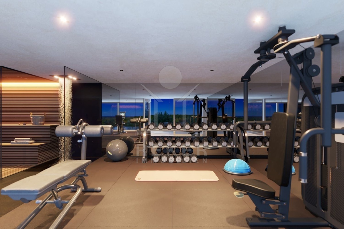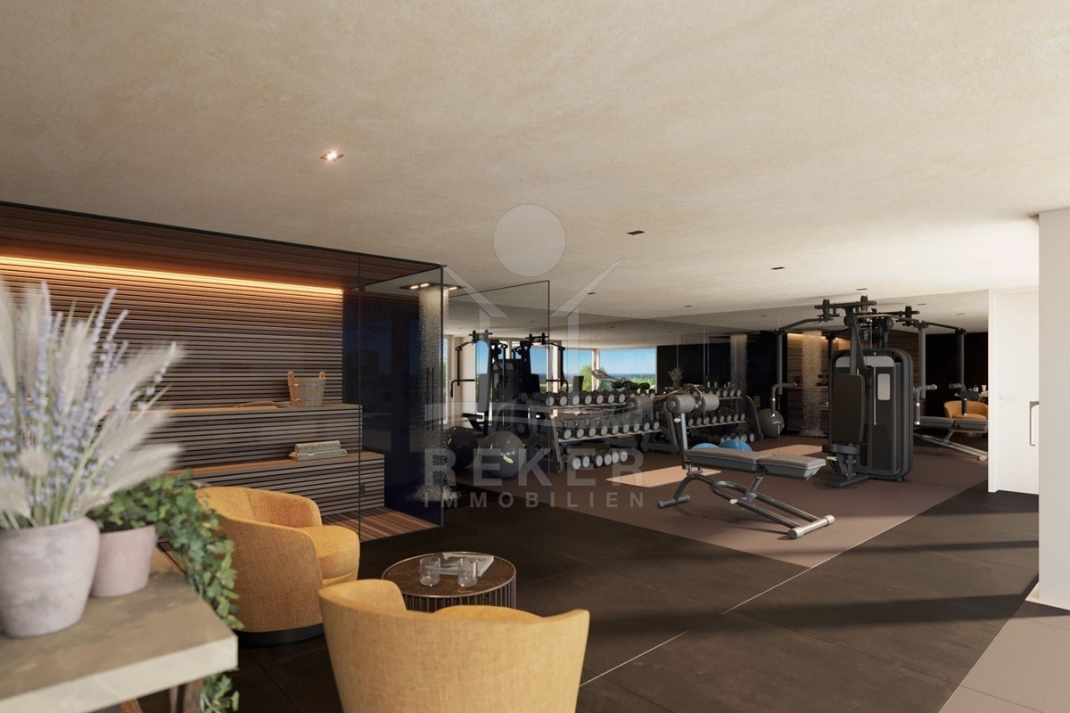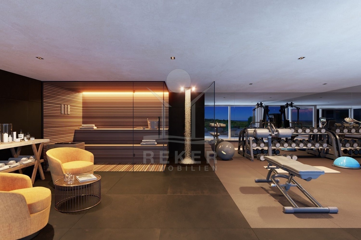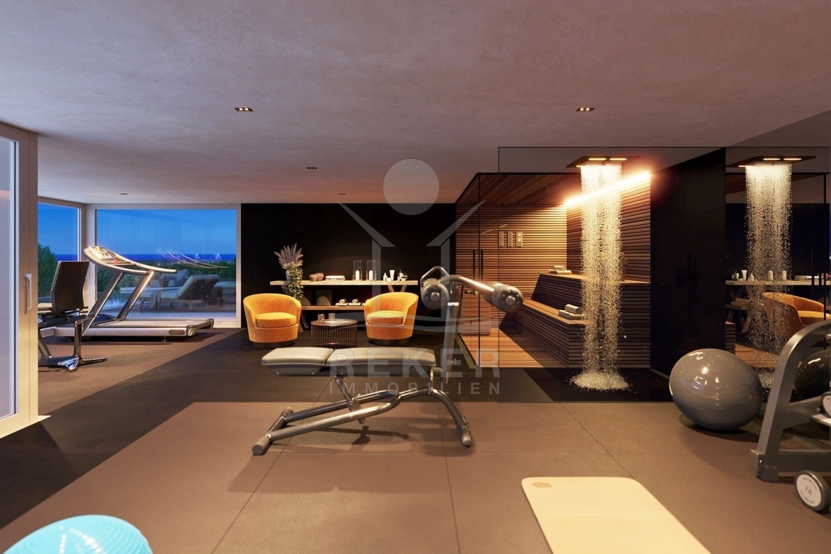 Zudem gibt es eine Garderobe, einen Waschraum, ein WC und einen großen verglasten Raum, der als Fitnessstudio, Sauna, Weinkeller, oder nach individuellen Wünschen genutzt werden kann.