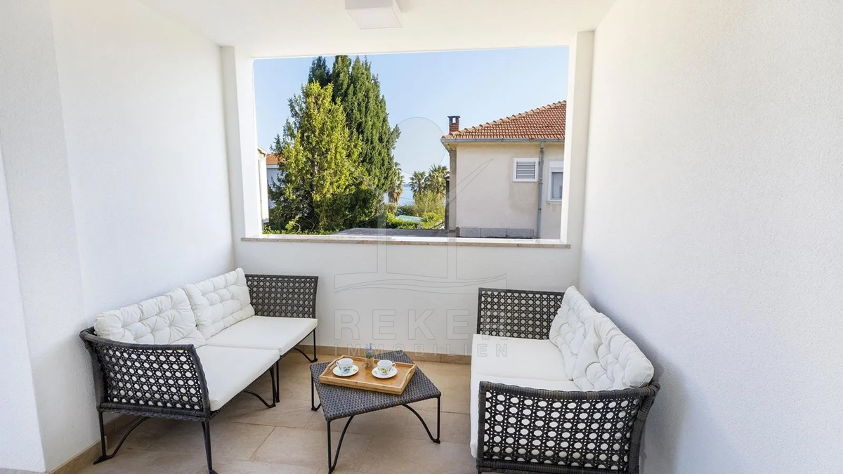 Nur 50 Meter vom Meer entfernt – diese Villa in Kaštela verbindet Rückzug und Zugänglichkeit auf seltene Weise. Die Lage ist ruhig, aber nicht abgeschieden. Sie erreichen das Zentrum zu Fuß in zwei Minuten, genießen aber absolute Ruhe im eigenen Garten. Die Umgebung: gewachsen, gepflegt und charmant. Eine mittelalterliche Burg liegt gleich um die Ecke, die Promenade beginnt fast vor der Haustür. Der Blick aufs Meer ist frei und allgegenwärtig – besonders schön vom Balkon im Obergeschoss.