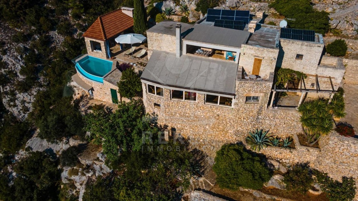 Die Steinhausvilla auf der Südseite der Insel Korčula vereint modernen Luxus und authentischen mediterranen Charme auf harmonische Weise. Umgeben von unberührter Natur genießen Sie hier eine unvergleichliche Privatsphäre und Ruhe, die in der heutigen Zeit selten zu finden ist. Die Villa bietet einen spektakulären Meerblick und eine unschlagbare Lage, ideal für diejenigen, die sich nach Erholung und Naturnähe sehnen. Trotz der abgeschiedenen Lage sind das Stadtzentrum in nur 15 Minuten mit dem Auto und das malerische Zrnova mit seinen Geschäften und grundlegenden Einrichtungen in 10 Minuten erreichbar.