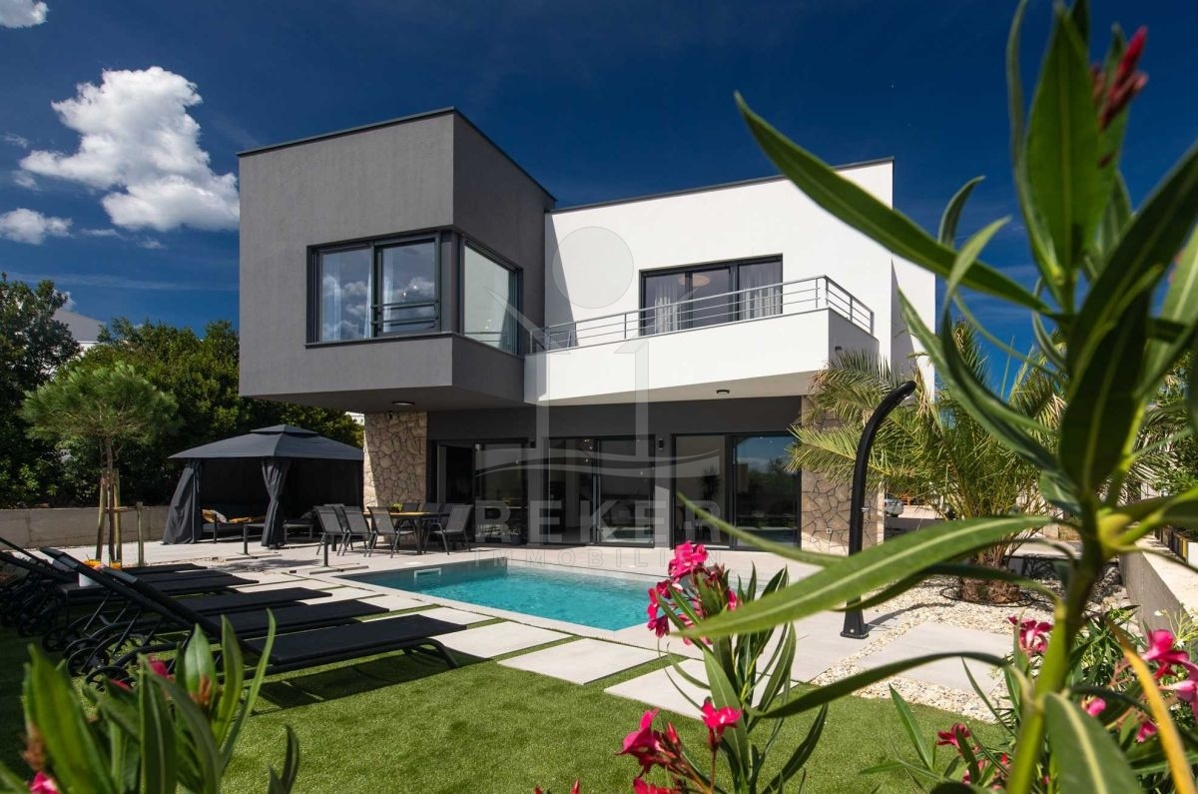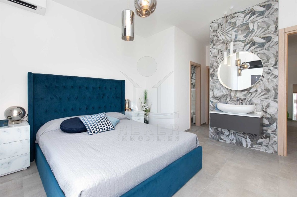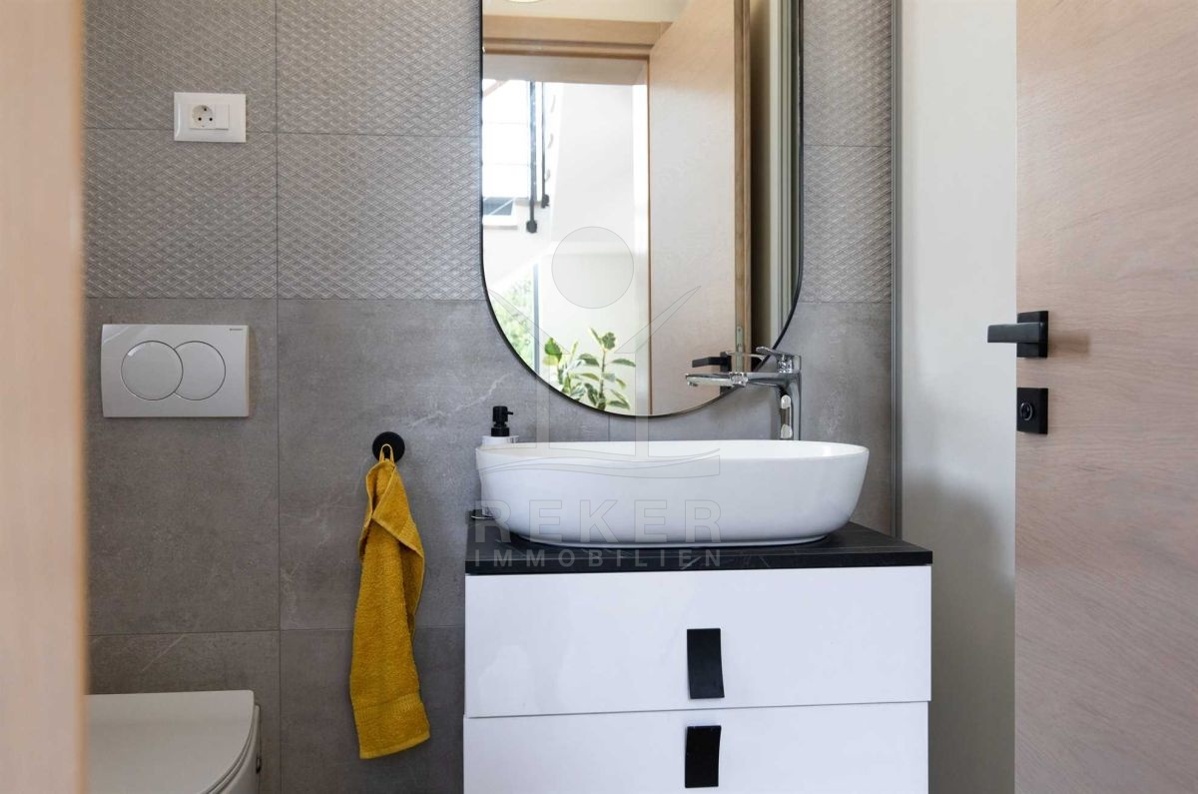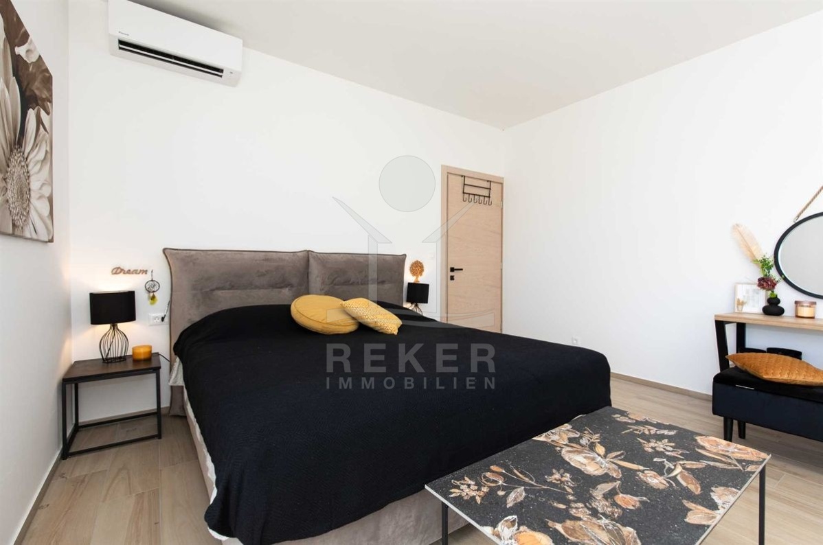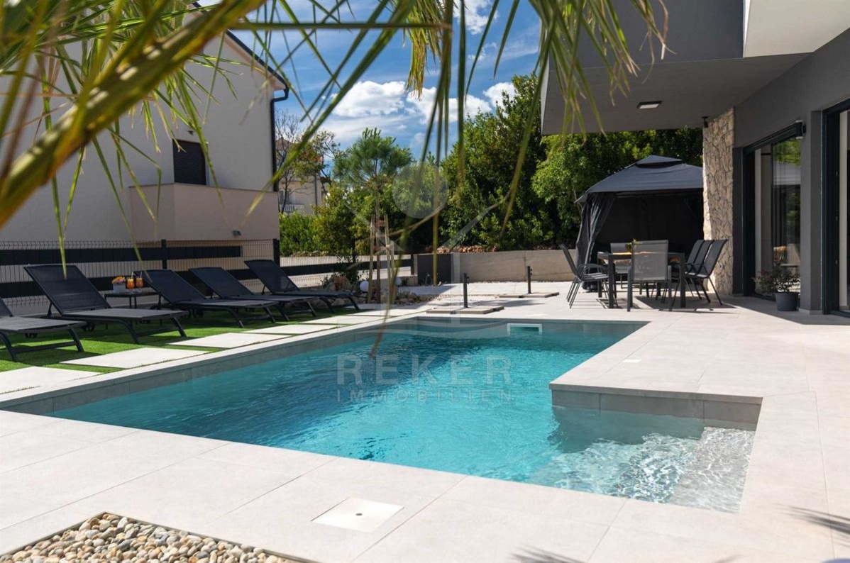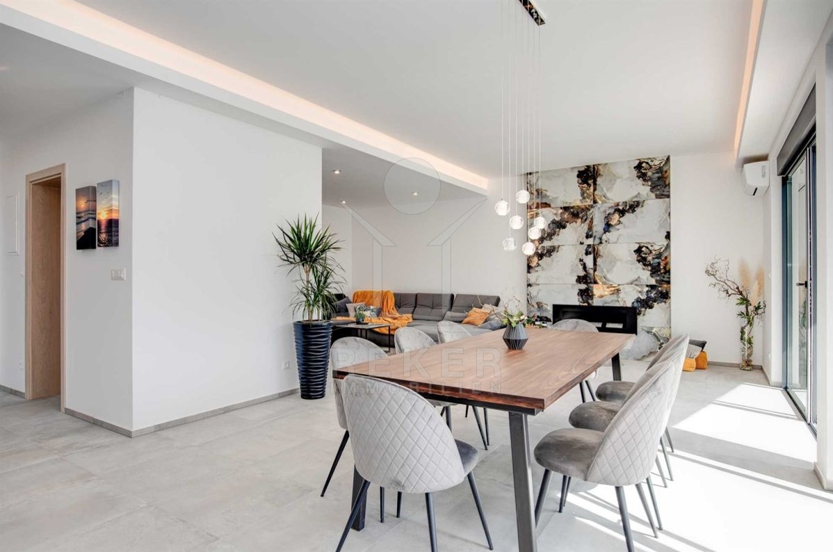 Auf einem großzügigen Grundstück von 440 m² und umgeben von einer Steinmauer liegt diese moderne Villa. Der liebevoll angelegte Garten verleiht dem Anwesen einen mediterranen Touch und lädt zum Verweilen ein. Das zweistöckige Gebäude wurde im Jahr 2022 erbaut und bietet eine Wohnfläche von 160 m². Diese Villa ist der perfekte Ort, um das kroatische Klima zu genießen und das Leben im Freien zu erleben.