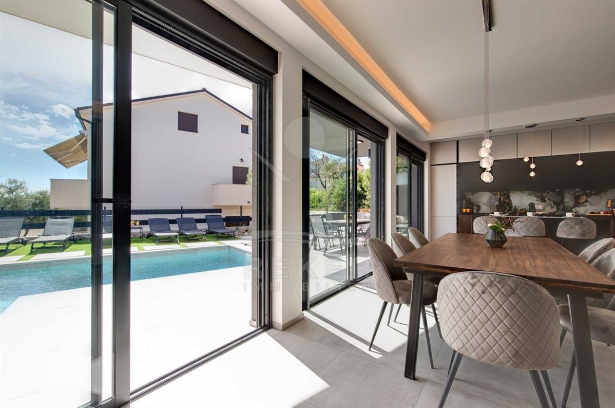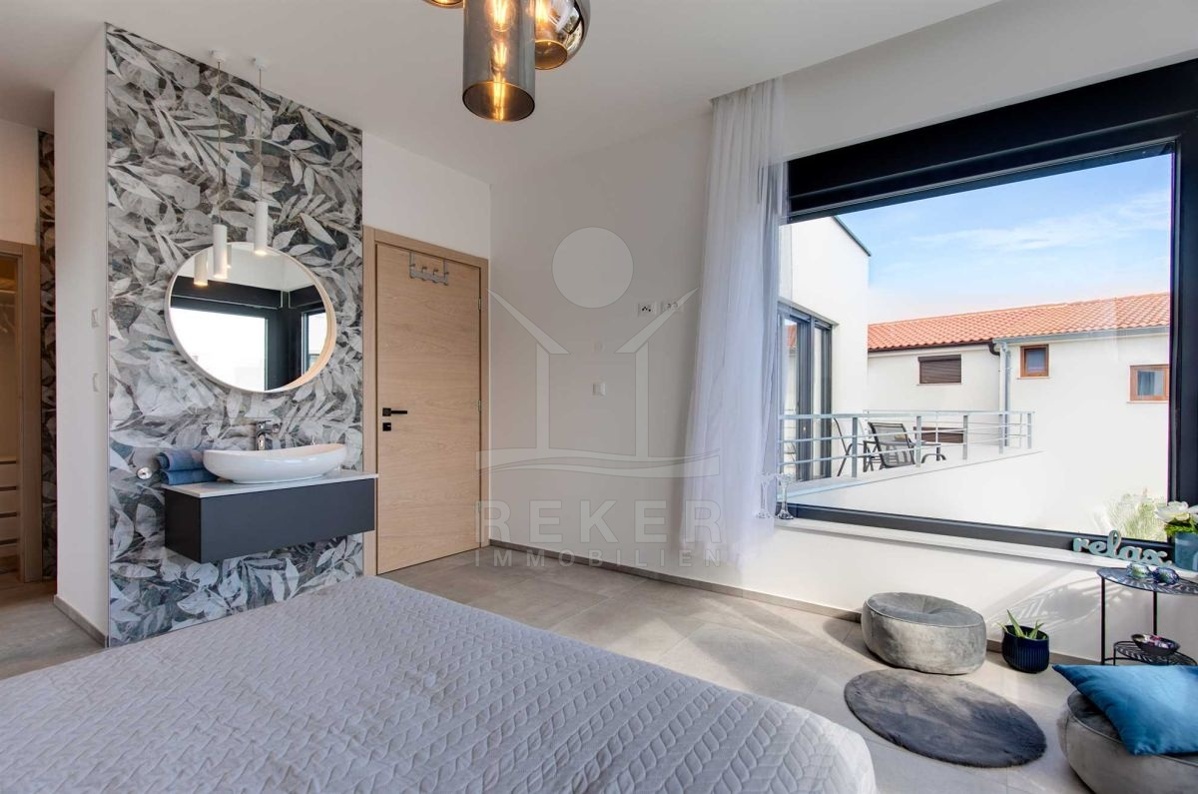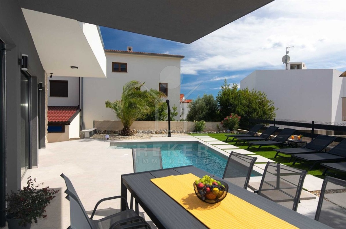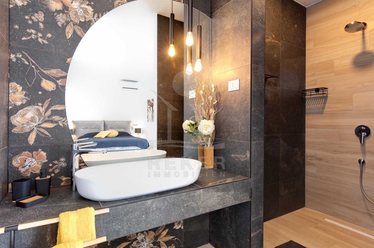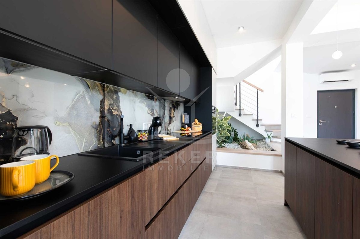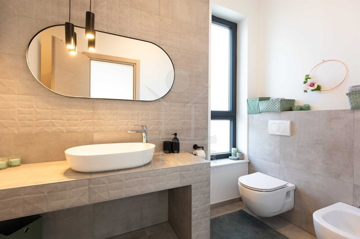 Auf einem großzügigen Grundstück von 440 m² und umgeben von einer Steinmauer liegt diese moderne Villa. Der liebevoll angelegte Garten verleiht dem Anwesen einen mediterranen Touch und lädt zum Verweilen ein. Das zweistöckige Gebäude wurde im Jahr 2022 erbaut und bietet eine Wohnfläche von 160 m². Diese Villa ist der perfekte Ort, um das kroatische Klima zu genießen und das Leben im Freien zu erleben.