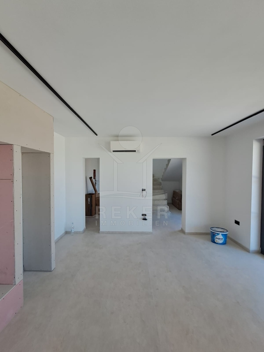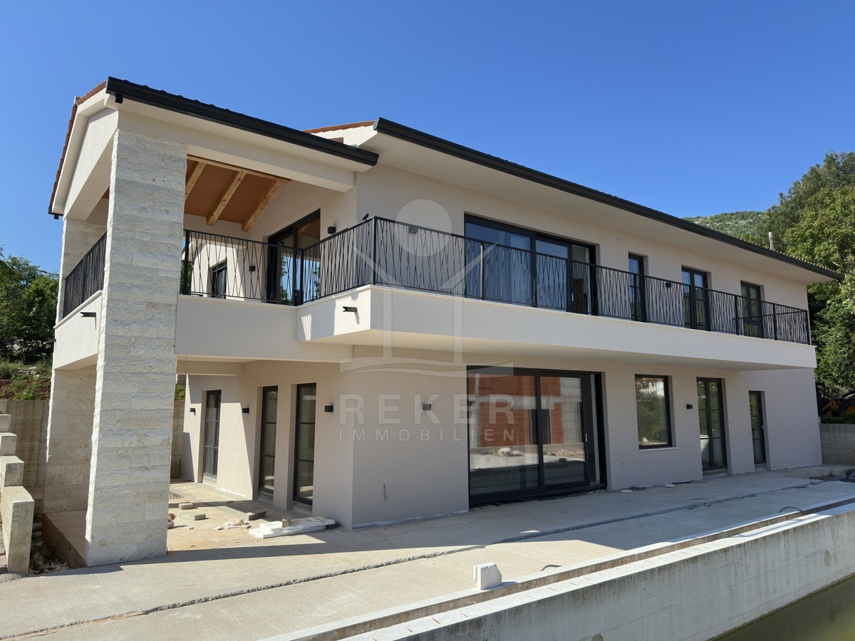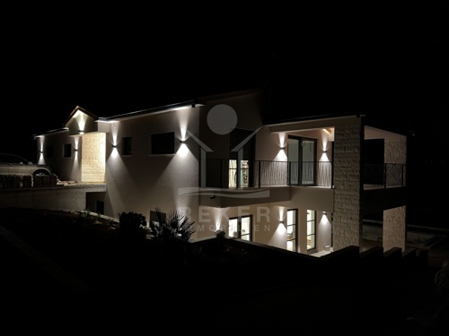 Das kleine Küstendorf, grün und ruhig, befindet sich rund 11 km von der Altstadt Labin entfernt. In dieser sonnigen Hanglage steht eine moderne Villa mit einem Ausblick, der Ihnen den Atem raubt: frei über die Kvarner Bucht, Rijeka und die Insel Cres. Ein Blick, der bleibt.