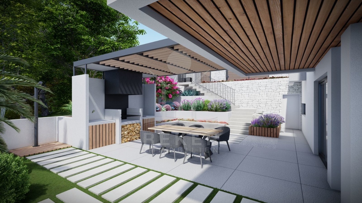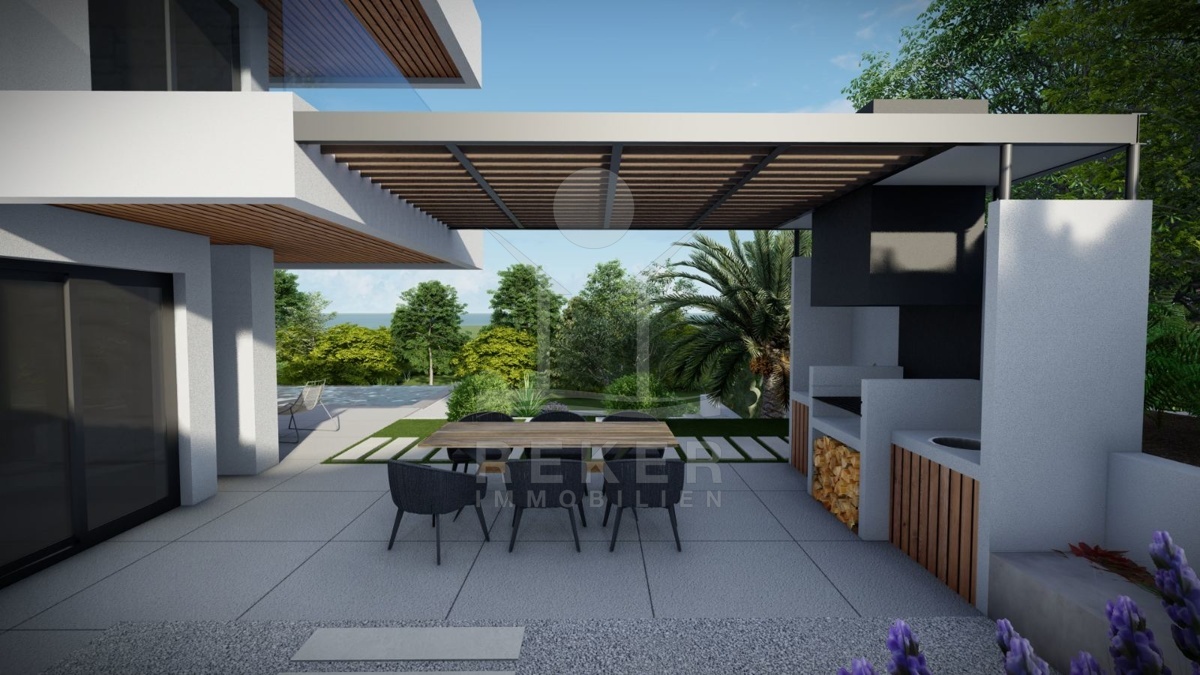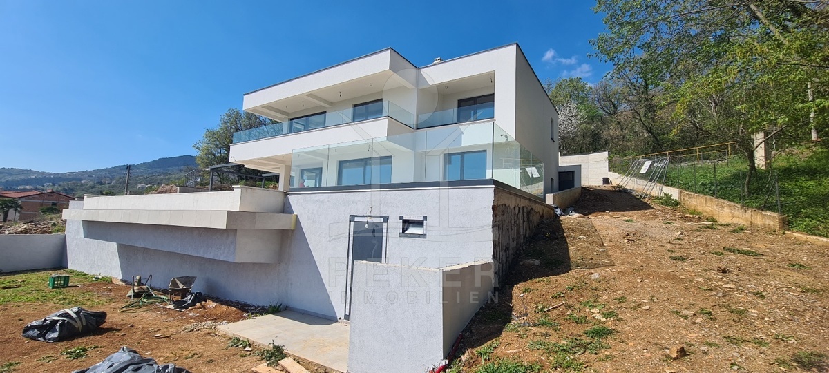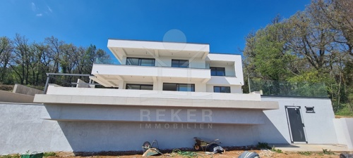 Die atemberaubende Neubau Luxusvilla in Lovran bietet einen unglaublichen Blick auf die glitzernde Kvarner Bucht und die majestätischen Hänge des Učka-Gebirges. Nur 800 Meter vom Meer und Strand entfernt gelegen, ist dieses Anwesen perfekt positioniert, um die Schönheit der kroatischen Küste zu genießen. Lovran, mit seinen engen Gässchen und mittelalterlichen Bauten, verströmt einen einzigartigen Charme und lädt zu Spaziergängen entlang der Lungomare ein. Die Nähe zu Opatija und anderen Sehenswürdigkeiten in der Umgebung bietet zahlreiche Freizeitmöglichkeiten. Mit Entfernungen von 19 km zum Hafen von Rijeka, 14 km zum Bahnhof in Matulji und 80 km zum Flughafen in Pula, ist diese Villa ideal gelegen. Der freie Blick und die grüne Umgebung mit den umgebenden Bäumen schaffen eine Oase der Ruhe und Entspannung - ein perfektes Zuhause, um den Lebensstil Kroatiens in vollen Zügen zu genießen.