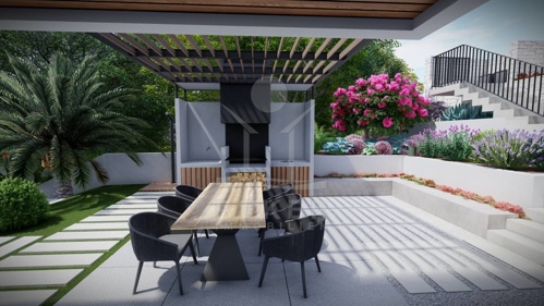 Die Luxusvilla erstreckt sich auf einem 907 m² großen Grundstück mit einer Wohnfläche von 230 m² in Hanglage und wurde 2024 erbaut. Das Gebäude umfasst 2 Etagen, die in ein Erdgeschoss und eine erste Etage unterteilt sind. Zu den luxuriösen Ausstattungsmerkmalen gehören eine Klimaanlage, Fußbodenheizung, Aluminiumschreinerei mit Dreifachverglasung und die Vorbereitung für Solarenergie. Von Beginn an wurden höchste Standards gesetzt, bei denen nichts dem Zufall überlassen wurde. Mit 4-5 Parkplätzen ist für genügend Stellfläche gesorgt, um Familie und Gäste bequem zu empfangen.