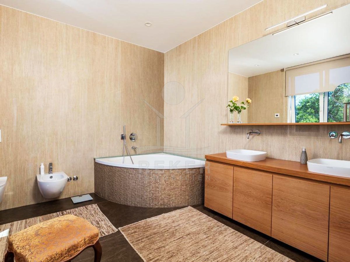 Der Außenbereich dieser Villa ist ein wahrer Erholungsort. Ein Infinity-Pool mit Elektrolyse-System und Salzwasser, eine Außendusche, umgeben von einer Terrasse mit Liegen, bietet einen atemberaubenden Panoramablick auf die umliegende Schönheit und das Meer. Eine großzügige überdachte Terrasse mit Sitzlounge, eine Outdoorküche mit 20 m² und Grill/Kamin laden zu unvergesslichen Barbecue-Stunden ein. Die große Terrasse bietet Platz für gesellige Abende und bietet den perfekten Rahmen, um die Schönheit der Umgebung zu genießen. Die Garage mit 50 m² bietet Platz für 2 Fahrzeuge oder Motorräder und weitere Parkplätze im Außenbereich runden das Gesamtpaket ab. Dieses Anwesen ist zweifellos ein architektonisches Meisterwerk, das Luxus und Natur in perfekter Harmonie vereint.