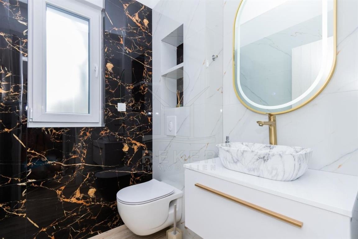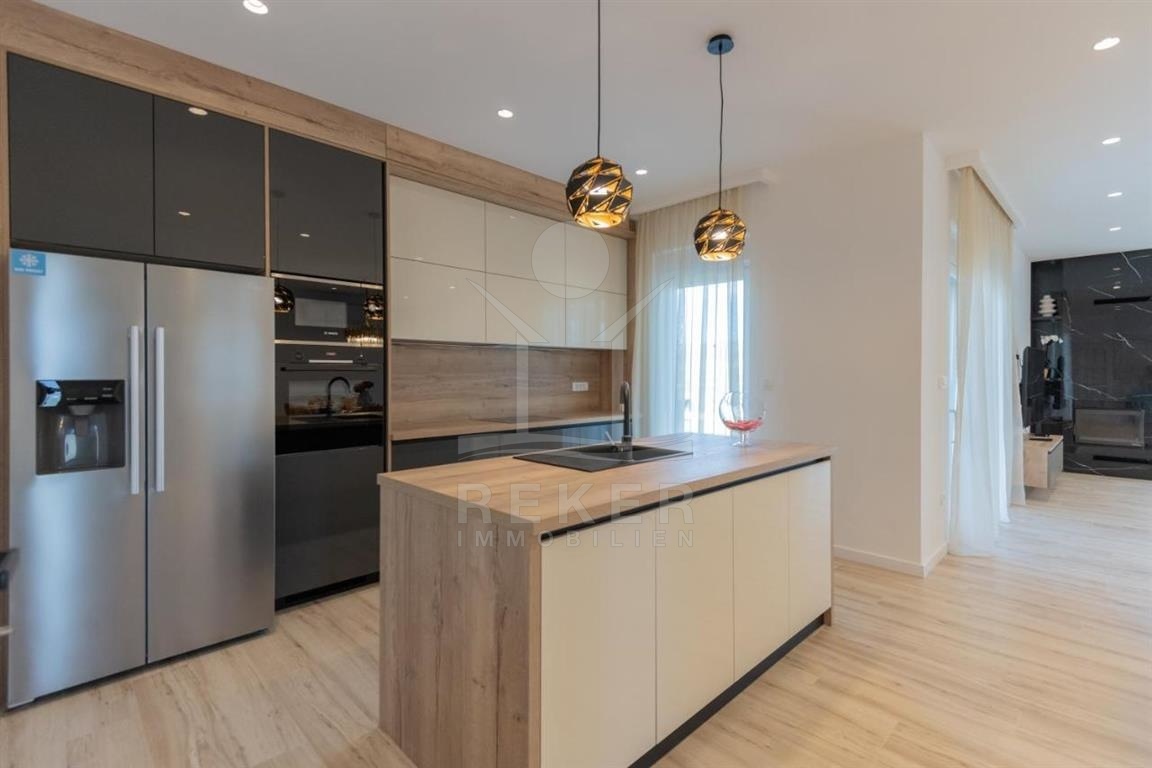 Diese herrliche Villa erstreckt sich über ein luxuriöses Grundstück von 1200 m² und präsentiert sich als frei stehendes Gebäude mit einer durchdachten Nord-Ost-Ausrichtung. Die Wohnfläche von 150 m² wird durch das Jahr 2024 charakterisiert, was bedeutet, dass Sie in ein nagelneues Zuhause einziehen. Die beeindruckende Deckenhöhe von 3 m sorgt für eine luftige Atmosphäre und lässt viel Tageslicht in die Räume strömen. Die Fußbodenheizung und Klimaanlagen in jedem Raum bieten zusätzlichen Komfort und ein angenehmes Wohnklima, während der Kellerrbereich Platz für einen Technikraum und einen zusätzlichen ungenutzten Raum von 40 m² bietet.