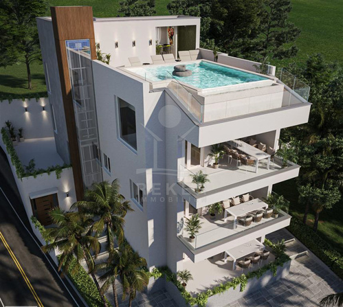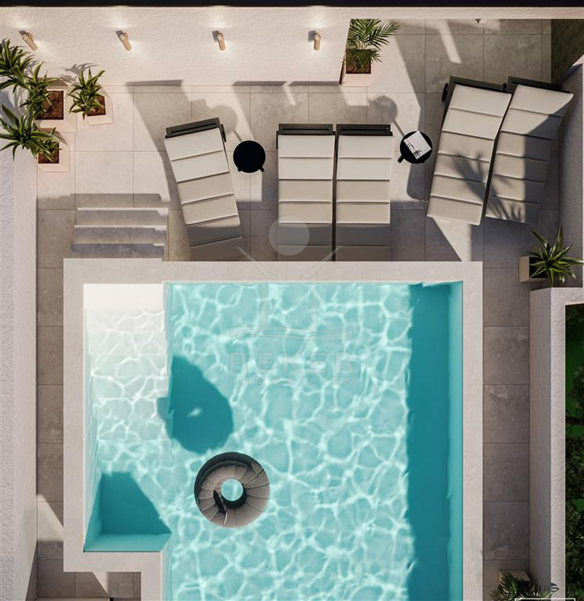 Da Anwesen auf einem 338 m² großen Grundstück ist eine architektonische Meisterleistung. Das dreistöckige Gebäude erstreckt sich über 350 m² und besticht durch hochwertige Ausstattungsdetails wie PVC-Fenster, Glasgeländer, keramische Böden und Fußbodenheizung in den Badezimmern. Mit Bodenklimaanlage, ferngesteuerten Markisen und modernen Deckeneinbauten in allen Zimmern setzt diese Villa neue Maßstäbe in Sachen Komfort und Eleganz. Der potenzielle Käufer kann aktiv an der Fertigstellung teilhaben, um sicherzustellen, dass jedes Detail seinen Wünschen entspricht. Die voraussichtliche Fertigstellung ist für September 2024 geplant. Im Innenhof stehen Ihnen 4 Stellplätze zur Verfügung.