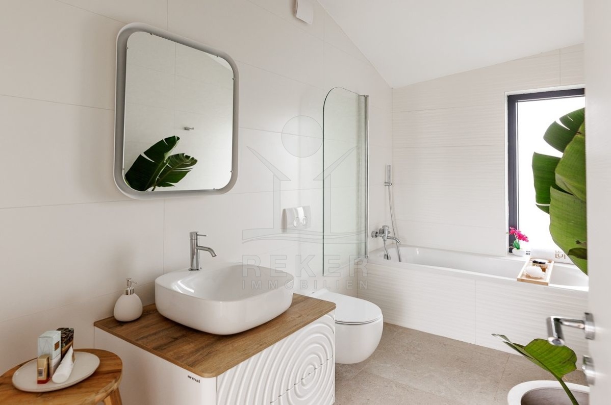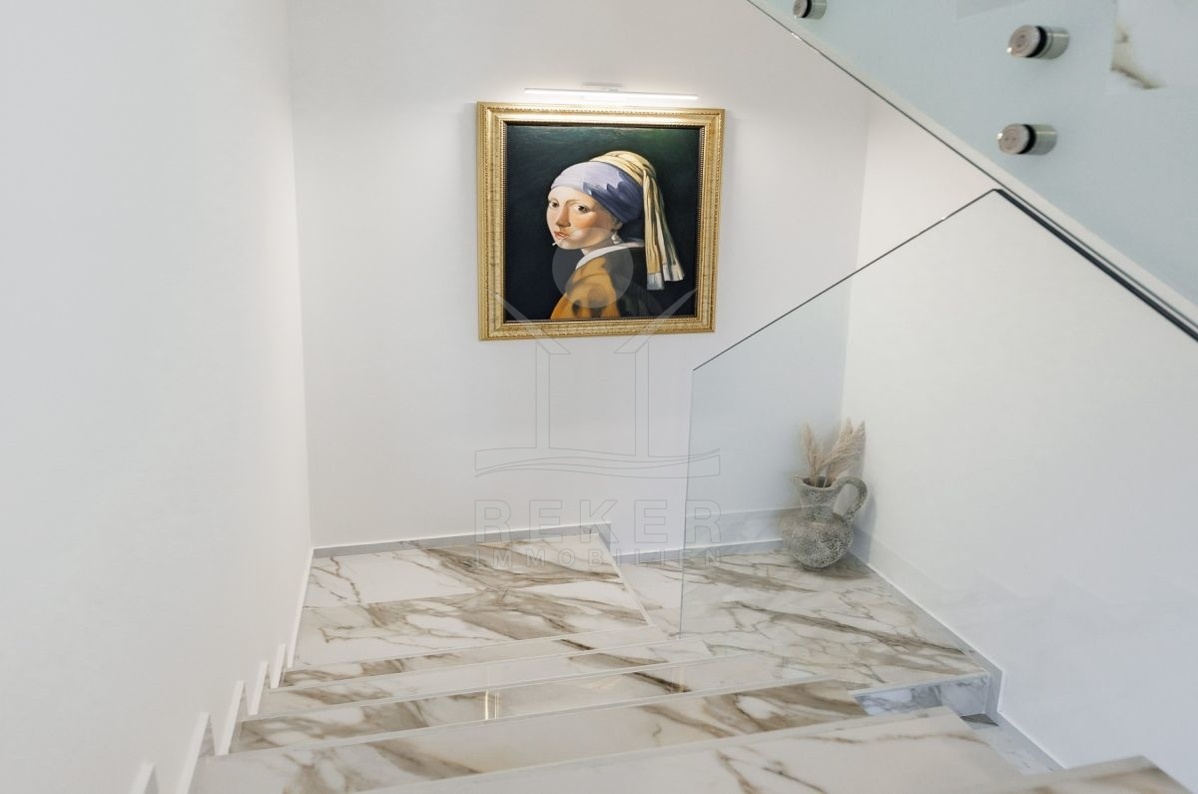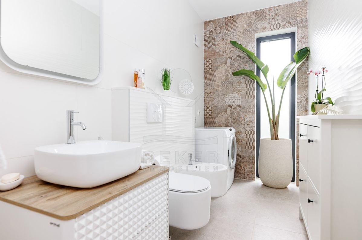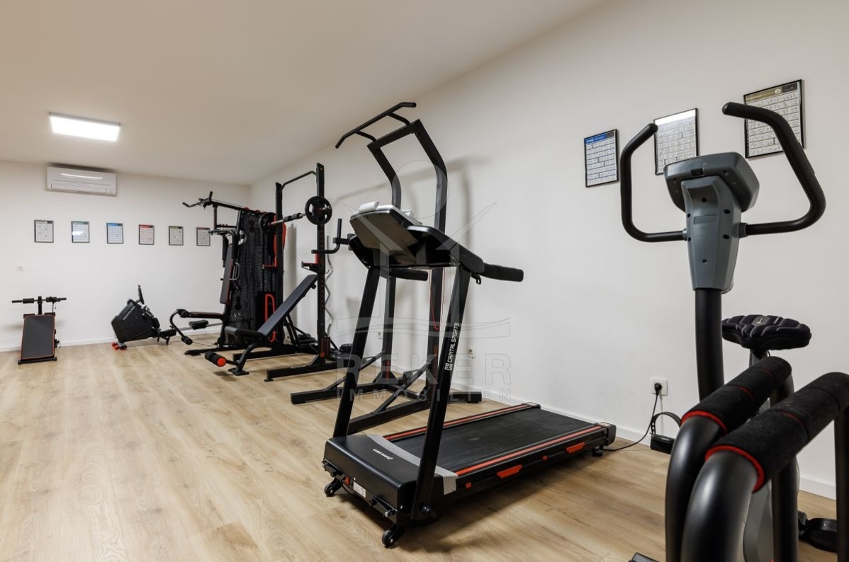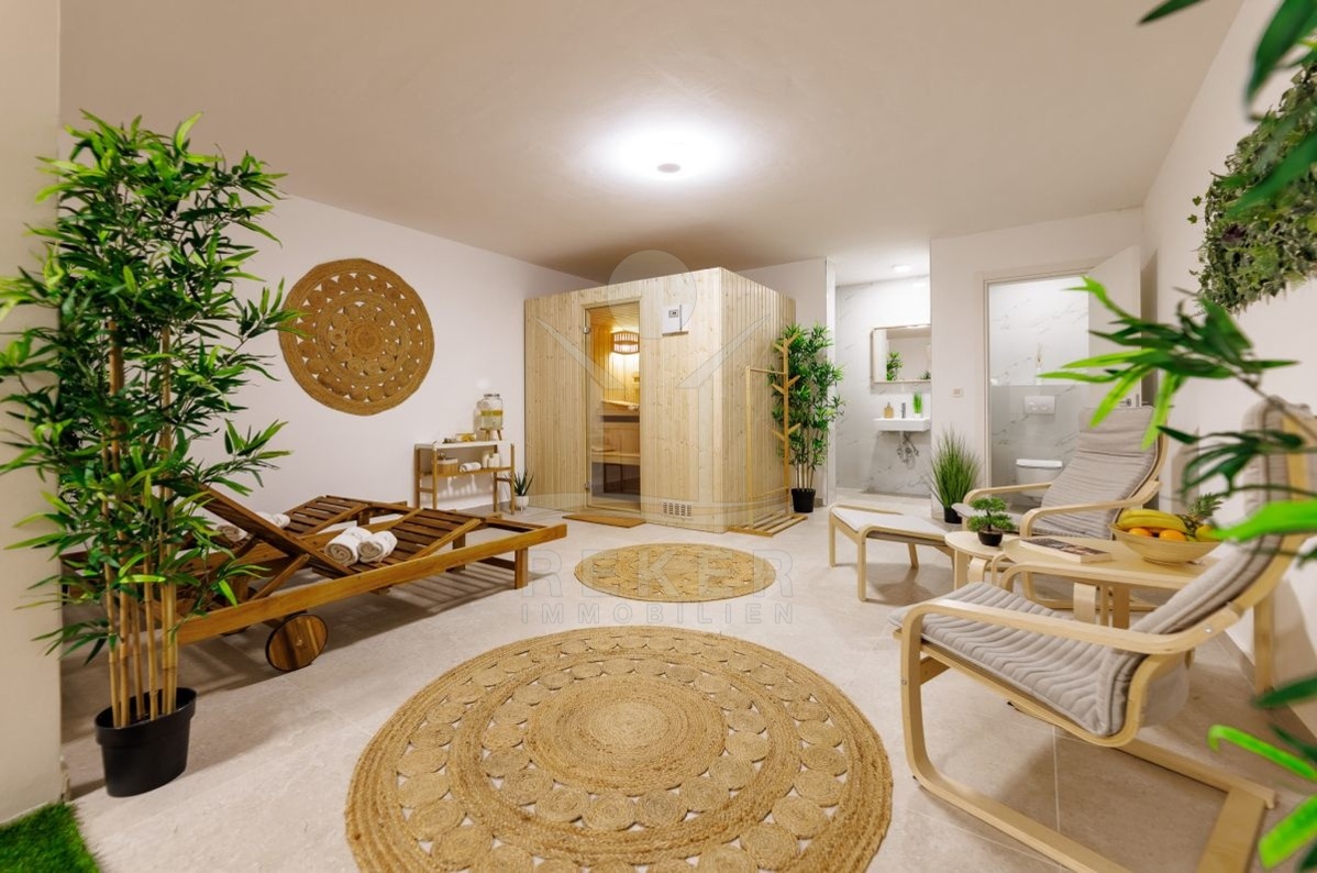 390 Quadratmeter Wohnfläche, auf drei Etagen verteilt. Unten: Weinkeller, Fitness, Sauna, Spielzimmer. Im Erdgeschoss: offenes Wohnen mit Küche, Essbereich, Schlafzimmer mit Bad, zusätzlich ein Gäste-Bad. Und oben? Drei Schlafzimmer – zwei mit Bad und Balkon. Alles drin: Fußbodenheizung, Klimaanlage, Alarmanlage. Möbliert, hochwertig, bezugsbereit.