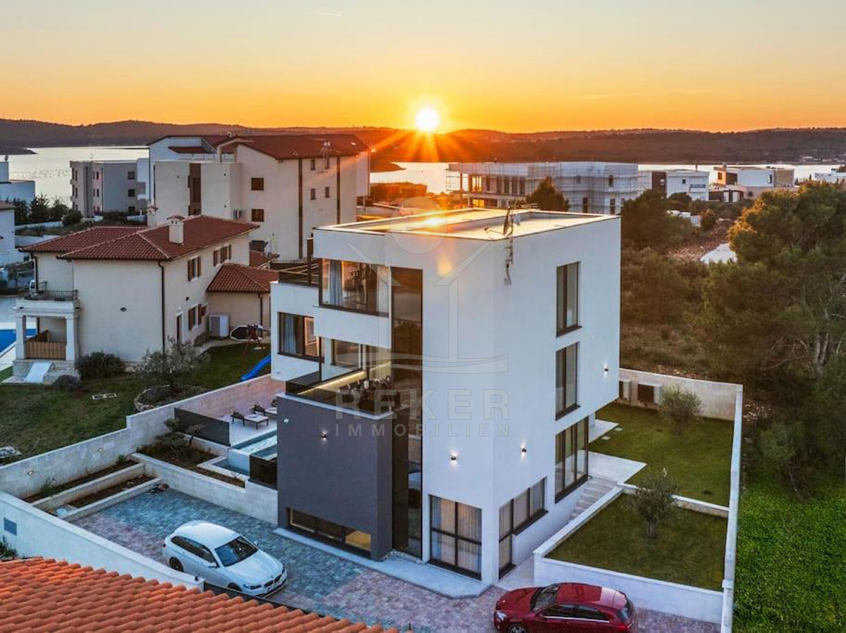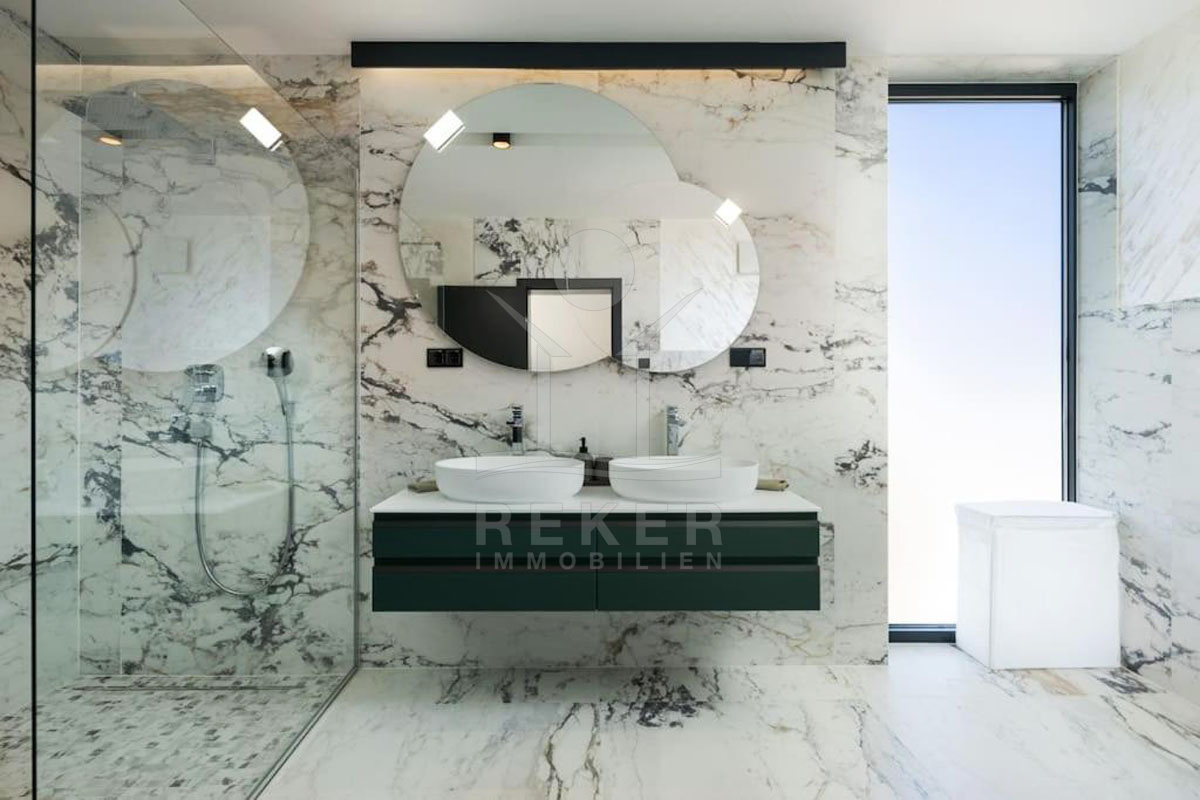 Das luxuriöse Anwesen auf einem 598 m² großen Grundstück, umrandet von einer Steinmauer, bietet höchsten Wohnkomfort auf 3 Etagen mit insgesamt 320 m² Wohnfläche mit Untergeschoss. Der Neubau aus dem Jahr 2024 besticht durch modernste Ausstattungsmerkmale wie Videoüberwachung, Alarmanlage, elektrischer Fußbodenheizung und einem Panoramaaufzug, der alle Stockwerke miteinander verbindet. Zusätzlich sorgt ein 15 kWh-Solarkraftwerk auf dem Dach für eine nachhaltige Energieversorgung.