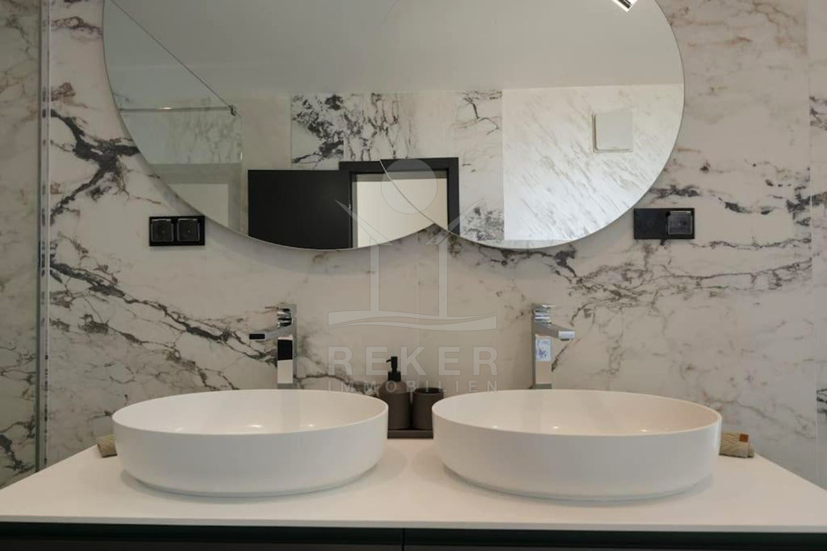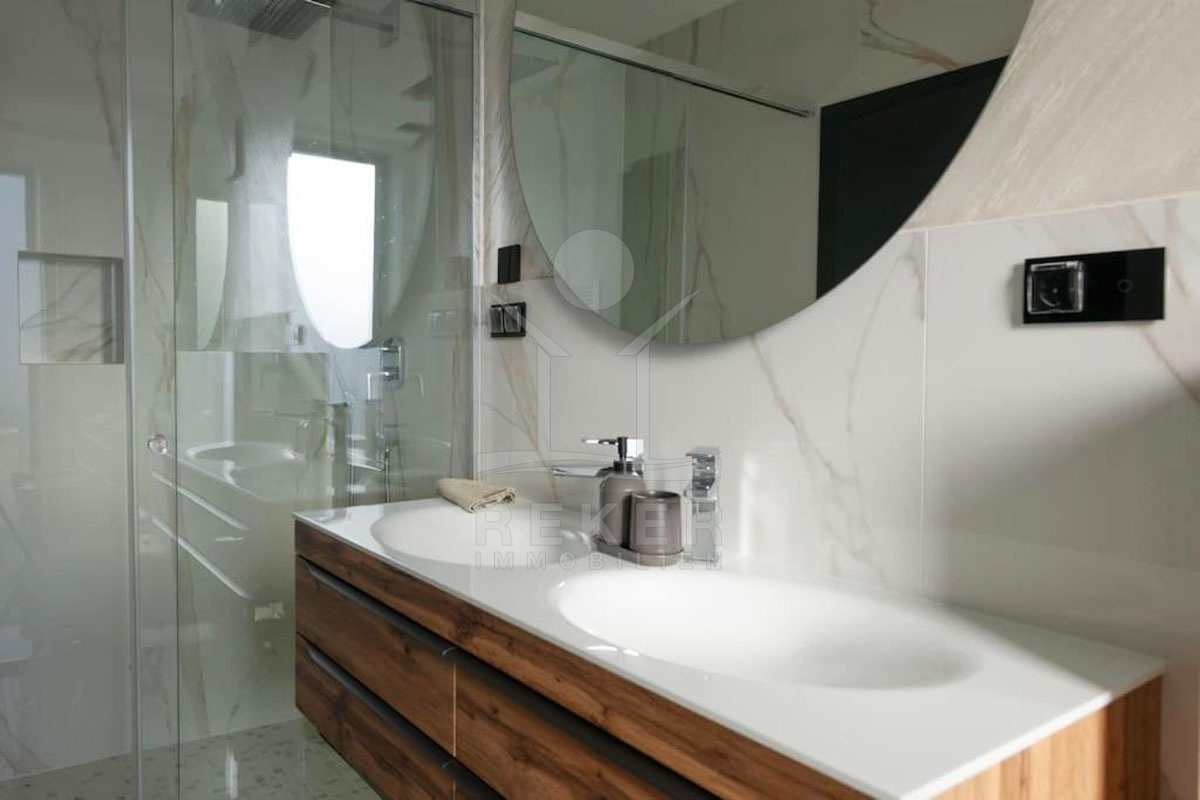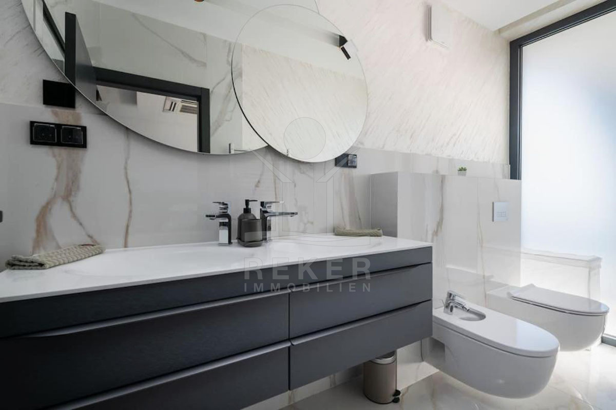 Die Villa ist mit Klimaanlage ausgestattet und wird mit luxuriösen Möbeln verkauft. Jedes Detail wurde sorgfältig geplant, und große Glasfenster sorgen für eine lichtdurchflutete Atmosphäre. Im Untergeschoss der Villa befindet sich eine gemütliche Taverne für Unterhaltung, ein WC sowie ein Heiz- und Technikraum. Auf dem Erdgeschoss finden sich drei Schlafzimmer, jedes mit eigenem Badezimmer und nach Südwesten ausgerichteten Terrassen für optimalen Genuss der Sonne.