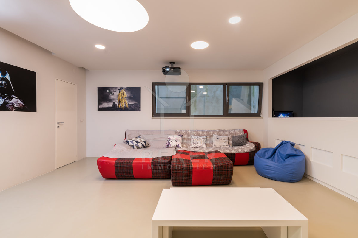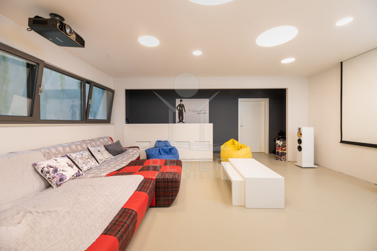 Einen netten Filmabend mit Freunden und Verwandten lassen Sie am besten im Kinosaal im Untergeschoss stattfinden.
