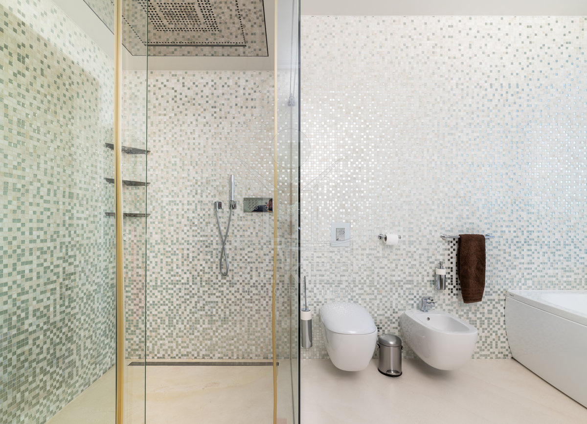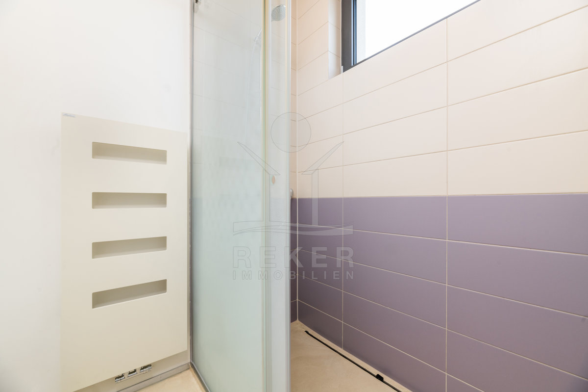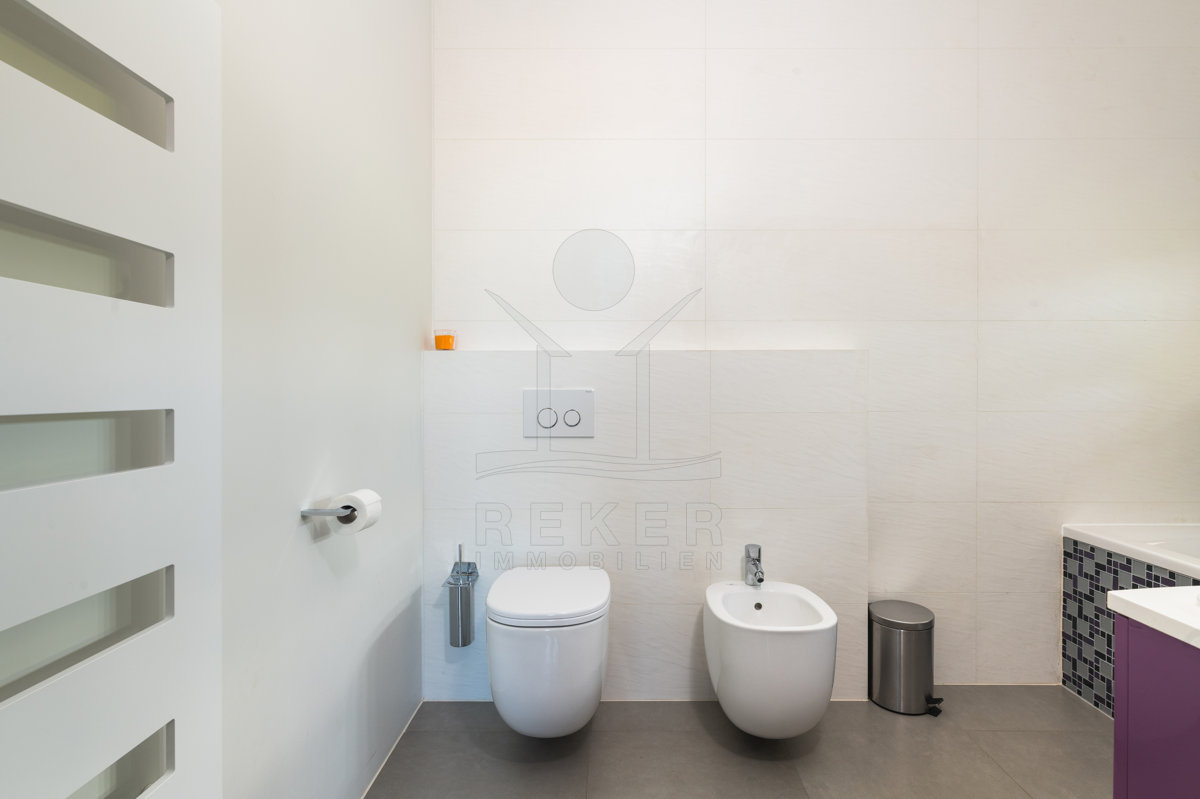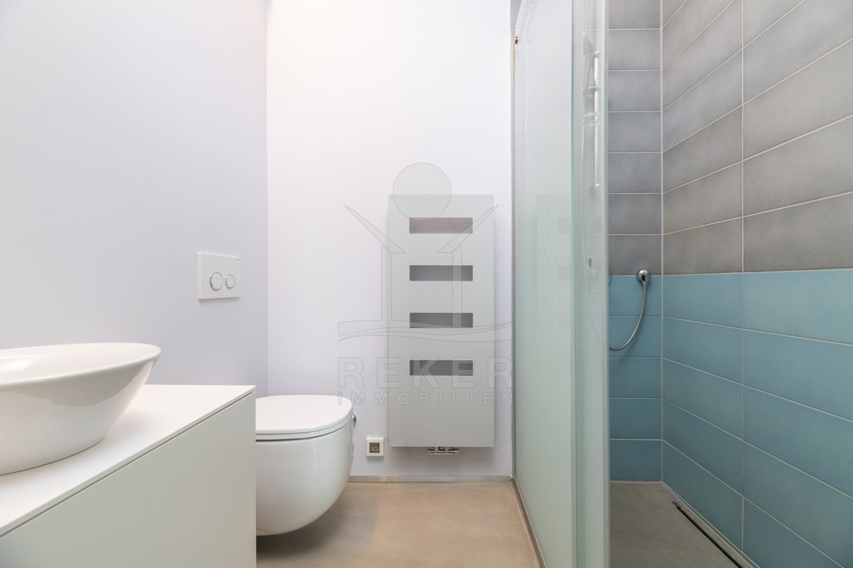 Der Begriff Bäder greift ein wenig zu kurz. Das Hauptbad entspricht eher einer Wellness-Oase mit einer "High Flow"-Regendusche und LED Beleuchtung ausgestattet.