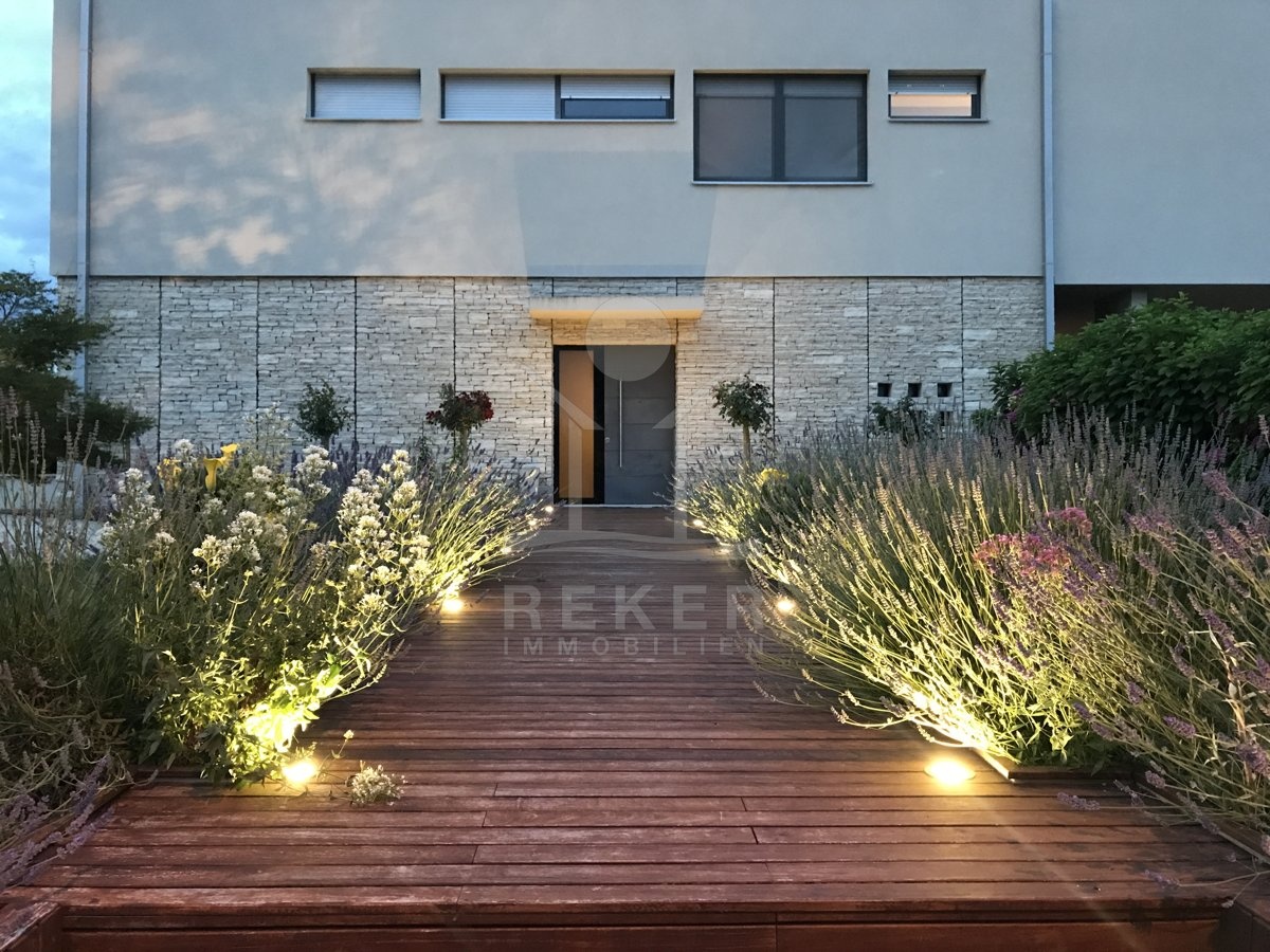 Trotzdem wird die Pflege nicht zur Belastung. Ein Mähroboter und eine automatische Bewässerung aller Pflanzen sorgt für eine sorgenfreie Nutzung.