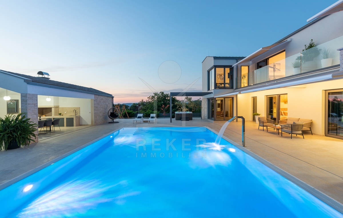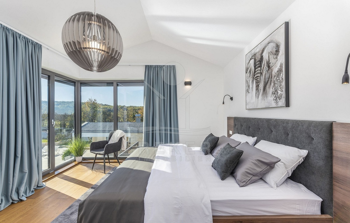 Sagenhafte 370 m² Wohnfläche verteilen sich in diesem Neubau aus 2021 auf 2 Stockwerke. Besonders hervorzuheben sind die Wärmepumpe und die fantastische Energieeffizienzklasse A, die für eine dauerhafte Senkung der Energiekosten sorgt. Der großzügige Balkon mit zauberhaftem Ausblick auf die umliegende Natur wird einer von vielen neuen Lieblingsorten sein.