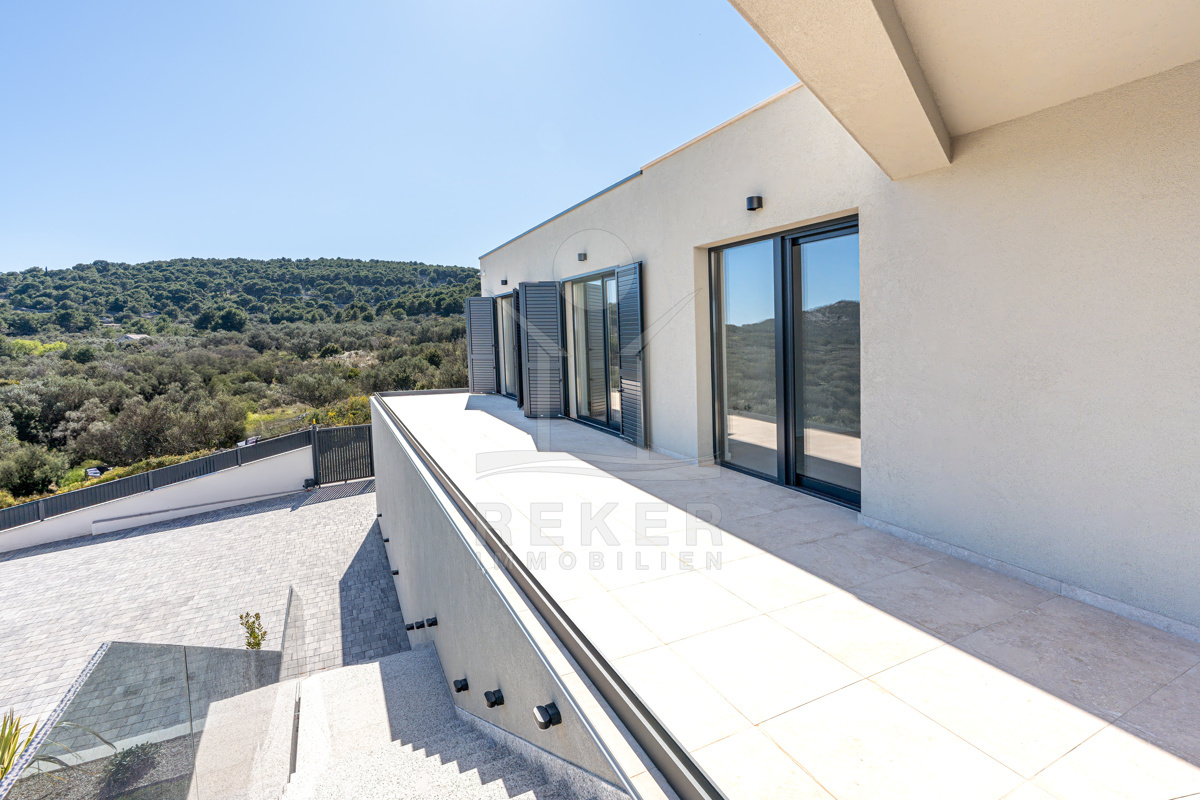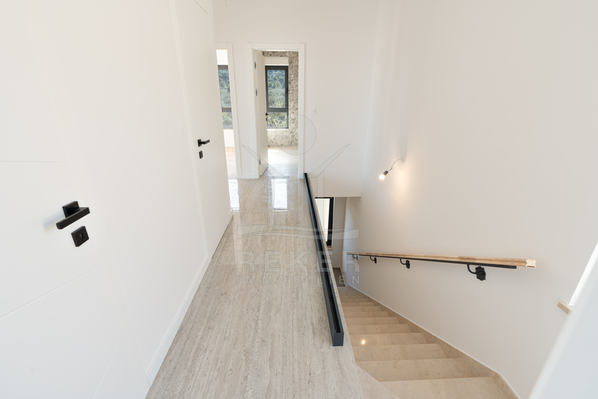 Oben: zwei weitere Schlafzimmer mit Bad – eines davon mit Ankleide und einem Balkon, der fast schon Bühne ist. Meerblick? Klar. Technik und Komfort? Komplett. Einfach ein Haus, das alles kann.