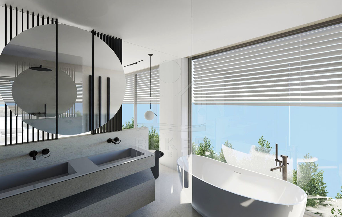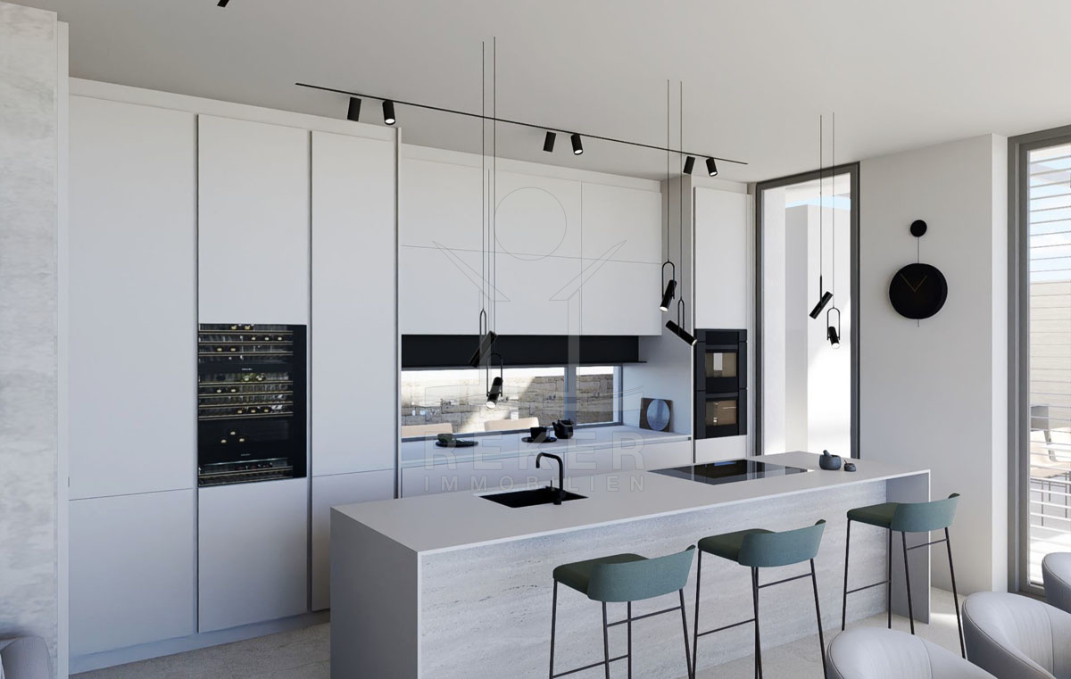 Die zukünftige Außenanlage dieser Villa wird ein echtes Highlight sein, mit einem Swimmingpool und einer überdachten Terrasse, die den Bewohnern wundervolle Stunden im Freien ermöglichen wird. Die geplante Garage für 2 Autos sowie weitere Stellplätze im Freien bieten ausreichend Platz für die Fahrzeuge der Bewohner und ihrer Gäste. Diese Villa vereint modernes Design, Luxus und eine spektakuläre Aussicht und verspricht ein wahrhaft extravagantes Wohngefühl.