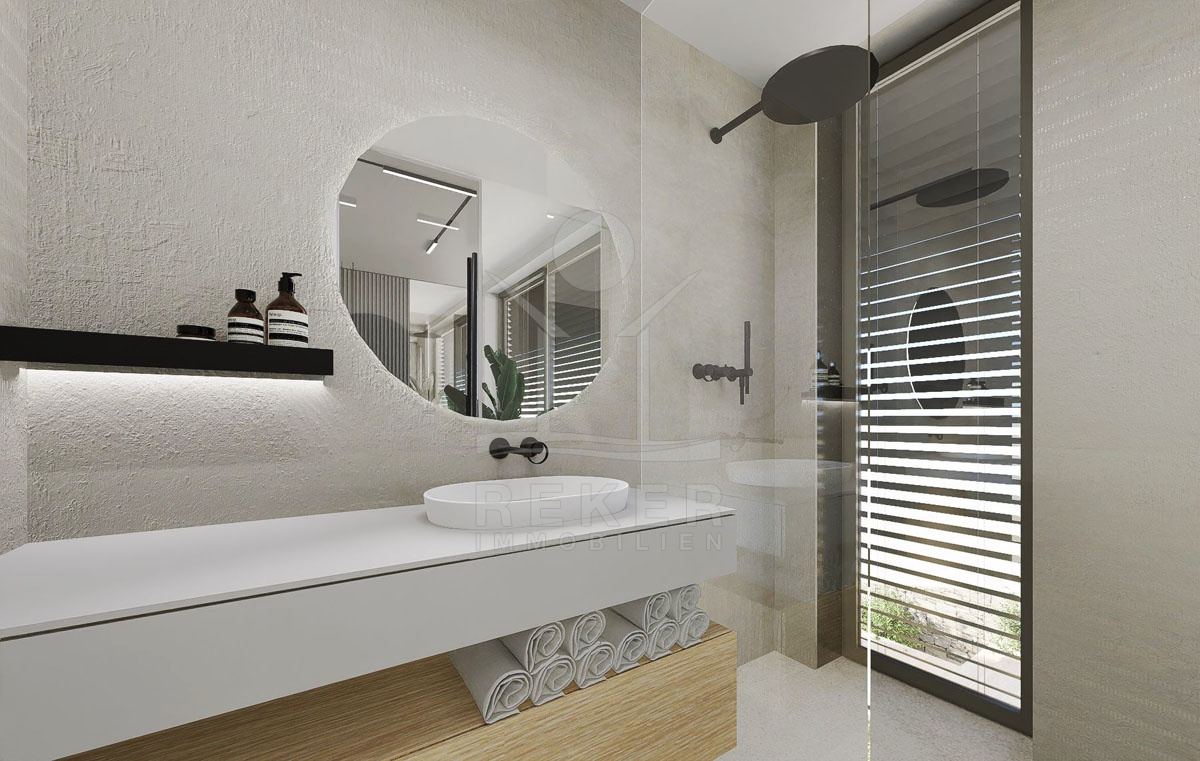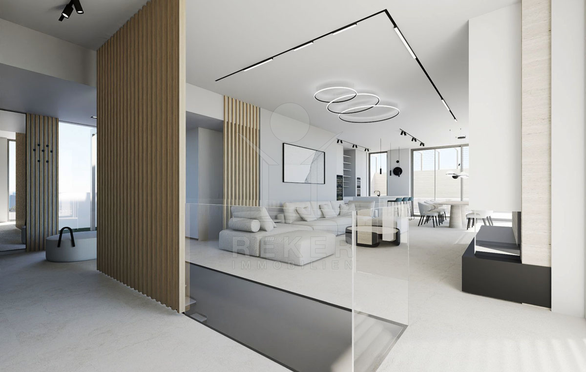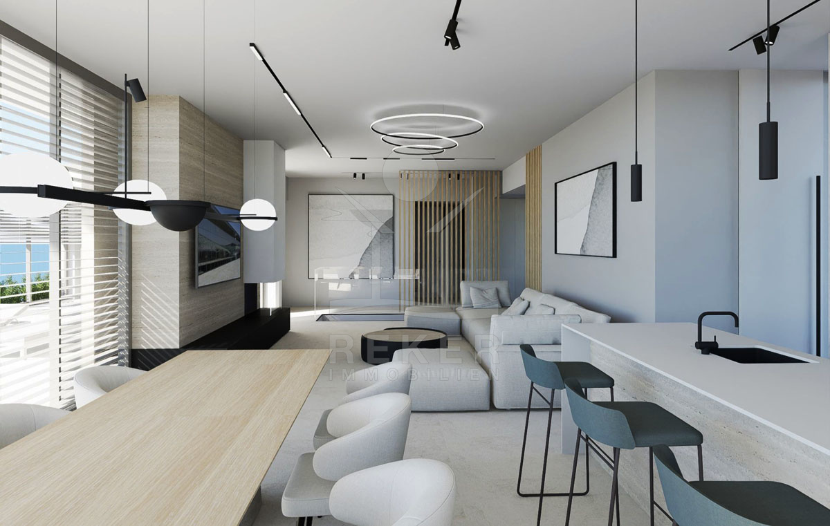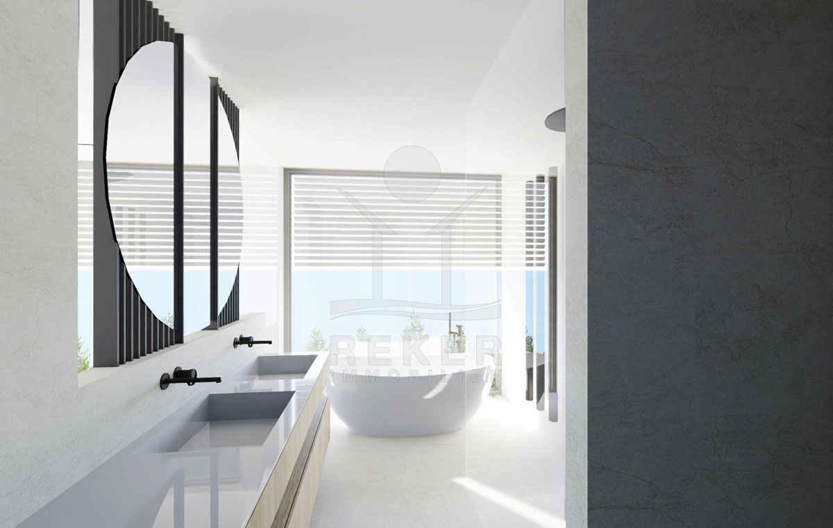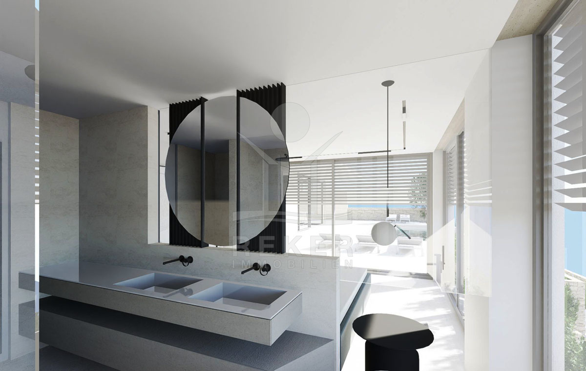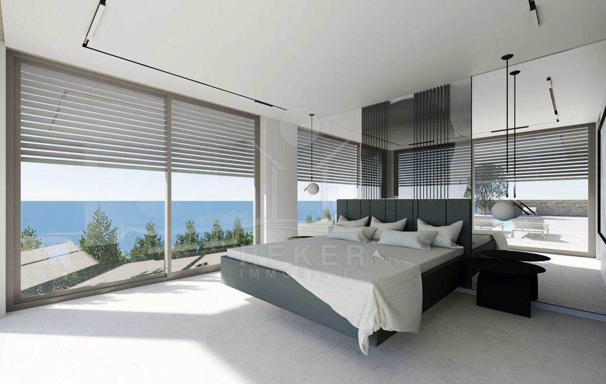 Die prachtvolle Neubauvilla beeindruckt mit einem atemberaubenden Meerblick und liegt nur 200 Meter vom Meer entfernt. In einer versteckten Oase gelegen, umgibt die Villa eine unvergessliche Ruhe. Trotz der Abgeschiedenheit sind Einkaufsmöglichkeiten in der Nähe und öffentliche Verkehrsmittel leicht erreichbar. Der perfekte Ort, um dem Alltagsstress zu entfliehen und die Schönheit der kroatischen Küste zu genießen. Von der Terrasse aus können Sie spektakuläre Sonnenuntergänge beobachten und die Ruhe dieser einzigartigen Lage auf sich wirken lassen.
