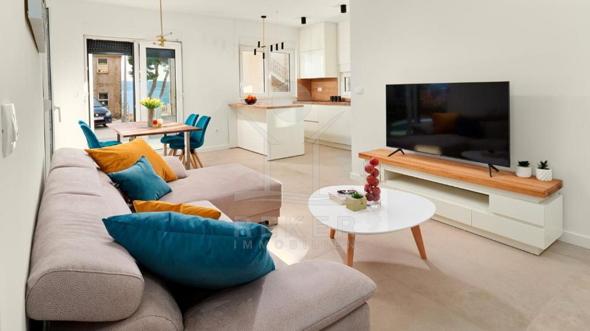 Zwischen Omiš und Split liegt diese Villa. Keine Hauptstraße, kein Lärm – einfach ein entspannter Ort zum Leben. Cafés, Läden, Strand? Alles zu Fuß erreichbar. Und das Beste: Das Meer ist nur 50 Meter entfernt.