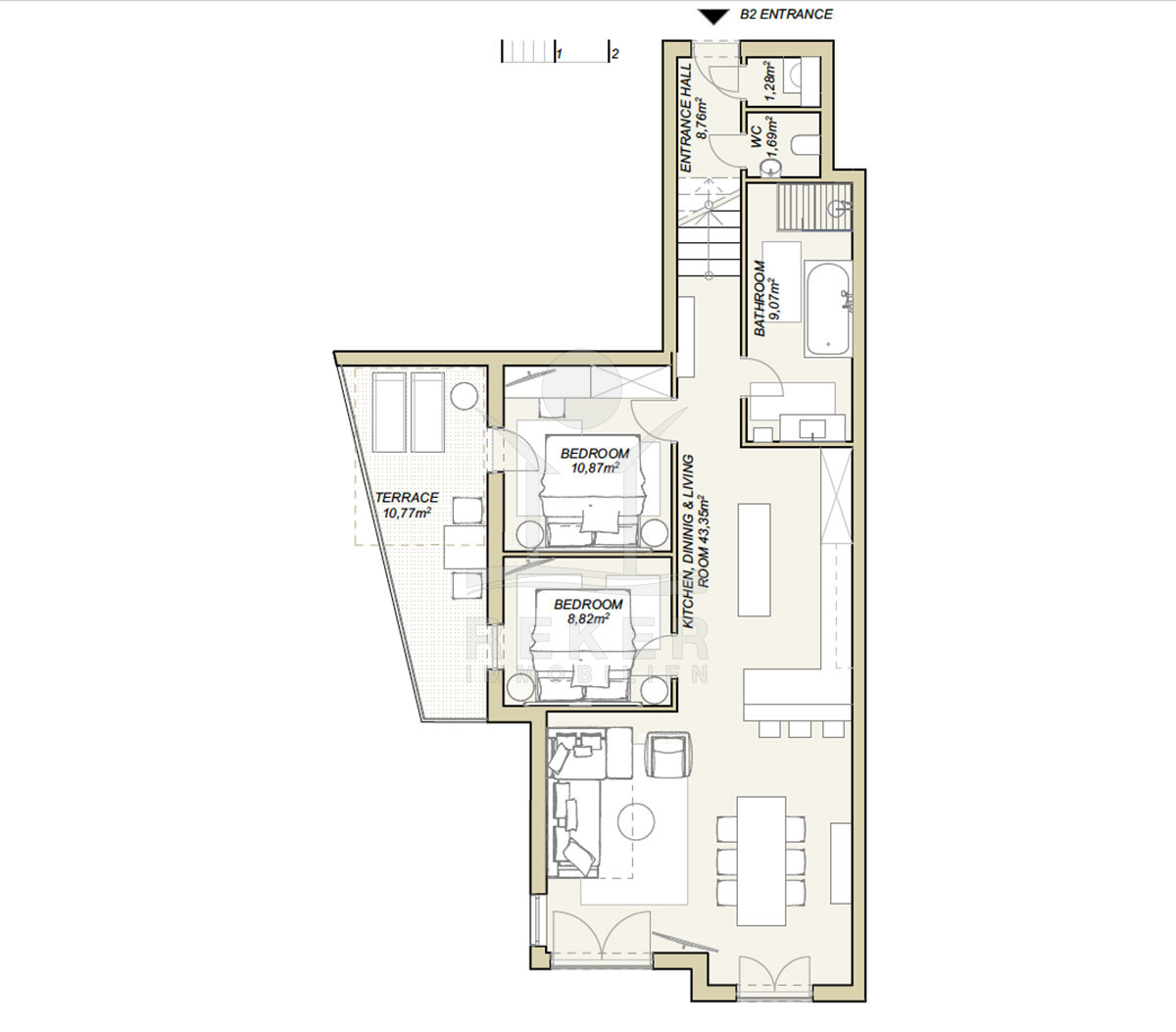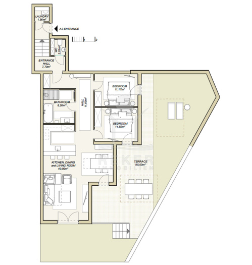 Die Villa ist auf vier Etagen verteilt: Untergeschoss, Erdgeschoss und zwei Obergeschosse. Insgesamt gibt es sechs vollständig ausgestattete Wohnungen – jede zwischen 84 m² und 153 m² groß. Alle Einheiten sind modern eingerichtet und wurden mit 4 bis 5 Sternen bewertet. Große Fenster und Terrassen sorgen für viel Licht und freie Sicht aufs Meer. Zur Ausstattung jeder Wohnung gehören eine voll eingerichtete Küche, ein Wohnbereich mit Sitzgruppe und Schreibtisch, Flachbild-TV, WLAN, Klimaanlage und Fußbodenheizung.