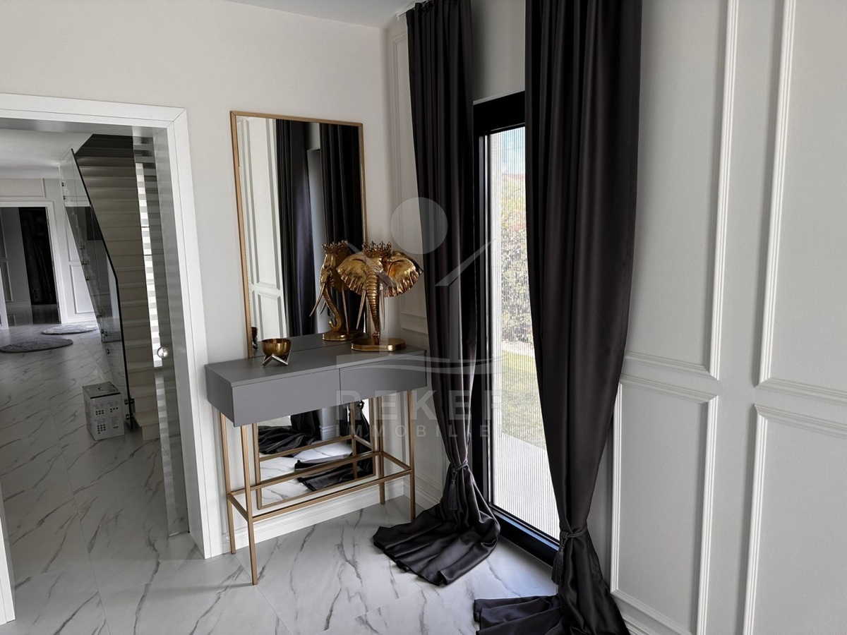 Das Anwesen befindet sich auf einem großzügigen Grundstück von 962 m². Es verfügt über einen gepflegten Rasen und ist von einer hohen grünen Hecke umgeben. Die Wohnung erstreckt sich über 2 Etagen mit einer Wohnfläche von 360 m². Sie ist mit einer Wärmepumpe, einer Alarmanlage, elektrischen Jalousien und Videoüberwachung ausgestattet. Parkplätze sind