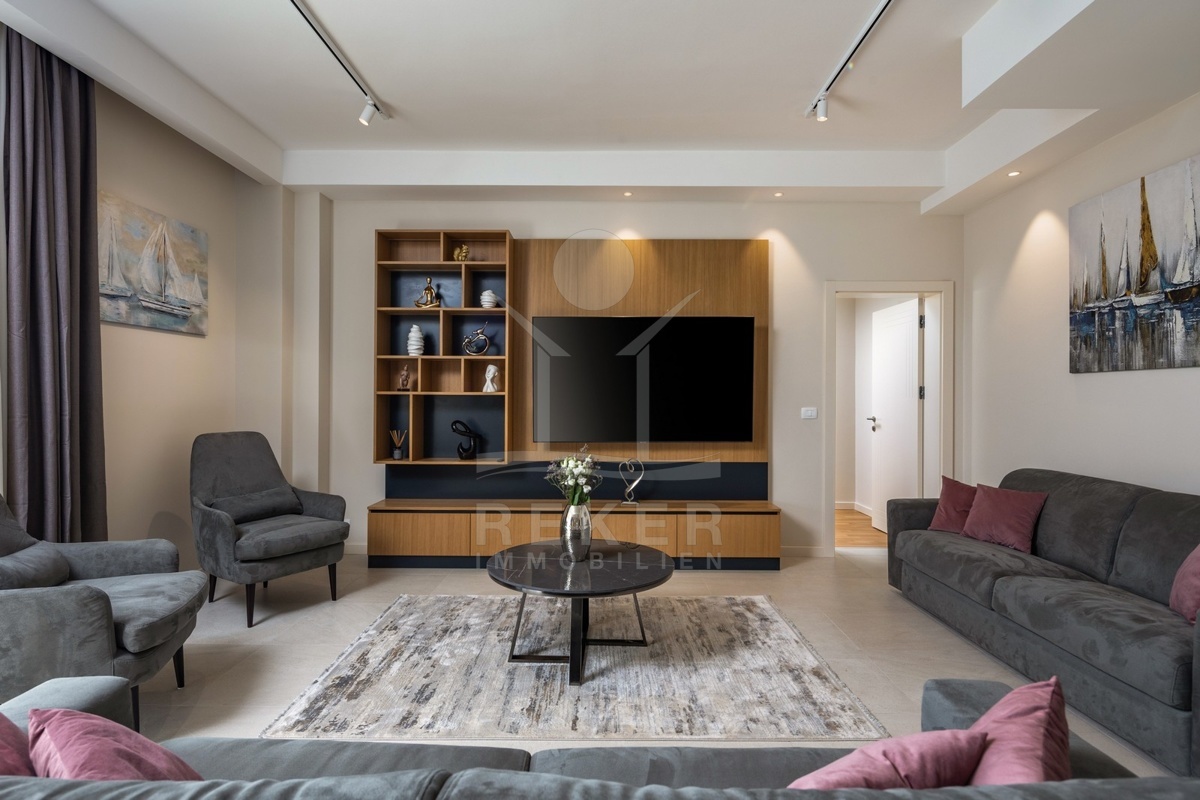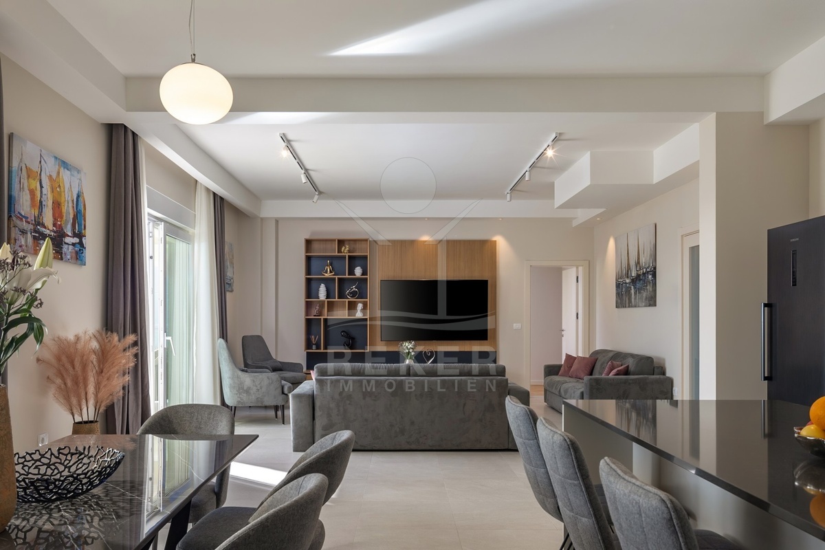 Die exklusive Villa begeistert durch ein stilvolles Interieur, das im Preis inbegriffen ist. Im Erdgeschoss befinden sich ein Flur, ein großzügiger Wohnbereich mit Ess- und Küche, ein Gäste-WC und ein Schlafzimmer mit eigenem Bad. Zugängliche großzügige überdachte Terrasse mit Poolbereich steht zur Verfügung.