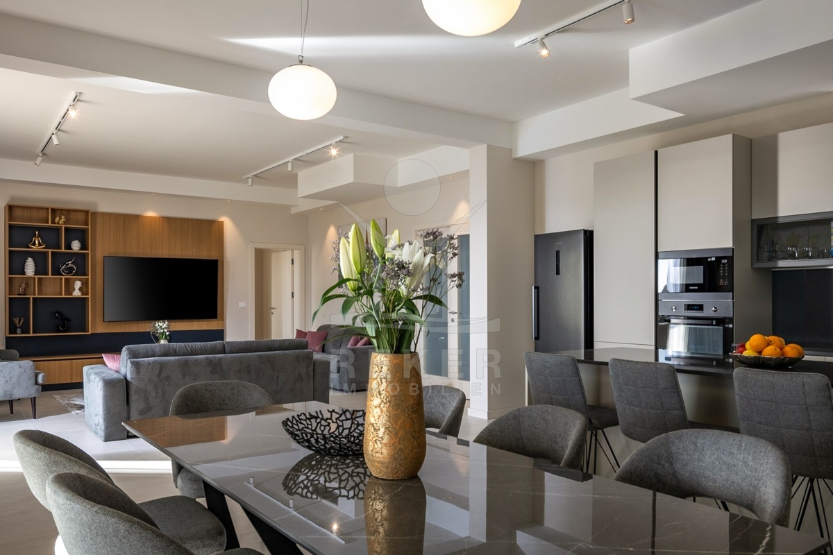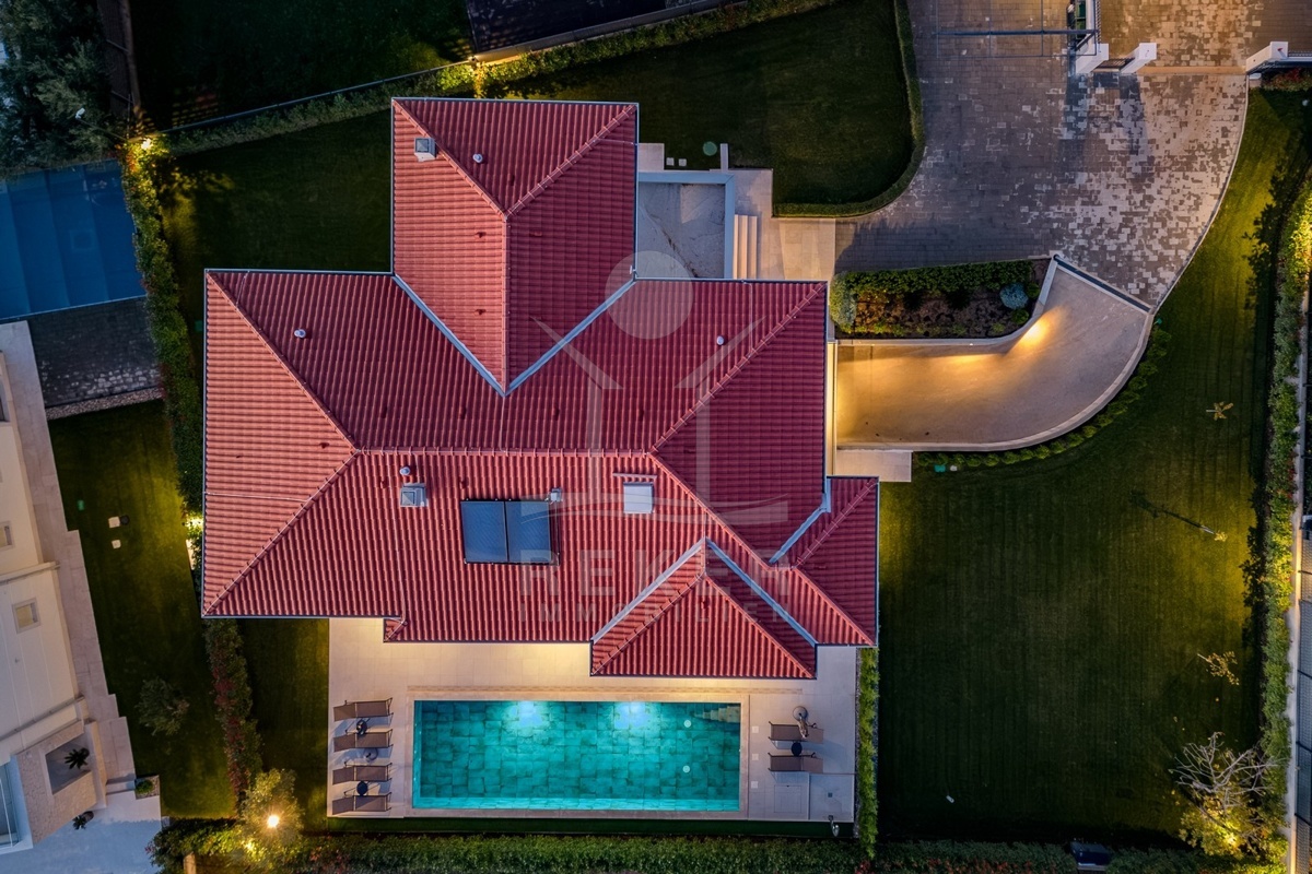 Erleben Sie puren Luxus in dieser beeindruckenden Villa, erbaut im Jahr 2022. Mit 3 Etagen und einer großzügigen Wohnfläche von 377 m² auf einem 1192 m² großen Grundstück bietet diese Immobilie erstklassigen Komfort. Die Villa ist mit modernen Annehmlichkeiten wie Fußbodenheizung, Klimaanlage und Solarpaneelen ausgestattet. Der zauberhafte Garten mit mediterranen Pflanzen und gepflegtem Rasen ergänzt das Gesamtbild.