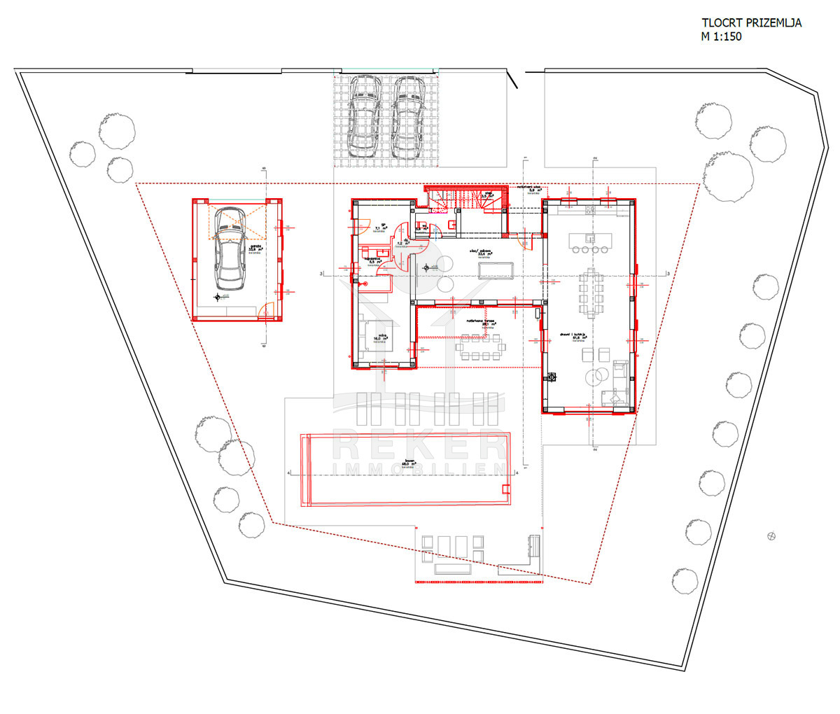 Die Außenanlage dieser Villa ist ein wahrer Traum: eine überdachte Terrasse, ein Swimmingpool, ein Balkon und eine überdachte Loggia sorgen für entspannte Stunden im Freien. Das Highlight ist jedoch die wunderschöne Dachterrasse mit einem 37 m² großen Whirlpool und einer eleganten Außenküche. Diese Luxusvilla bietet nicht nur exklusives Wohnen, sondern auch eine einzigartige Möglichkeit, das mediterrane Leben in vollen Zügen zu genießen.