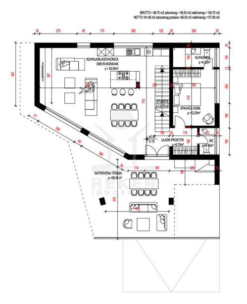 Das Haus erstreckt sich über drei Etagen und bietet eine Vielzahl von Annehmlichkeiten. Im Untergeschoss befinden sich eine geräumige Garage und ein praktischer Abstellraum. Das Erdgeschoss beeindruckt mit einem offenen Grundriss, der ein Schlafzimmer mit eigenem Badezimmer, eine Gästetoilette, eine moderne Küche, ein Esszimmer und ein Wohnzimmer mit einem gemütlichen Kamin umfasst. Von der überdachten Terrasse genießen Sie einen herrlichen Blick auf den Primošten-Archipel.