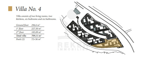 Mit einer Wohnfläche von 297 m² im Erdgeschoss, 228 m² im ersten Stock und 186 m² im zweiten Stock bietet diese Villa großzügige und luftige Räume für einen komfortablen Aufenthalt. Die offenen Wohnbereiche schaffen eine einladende Atmosphäre für entspannte Stunden.