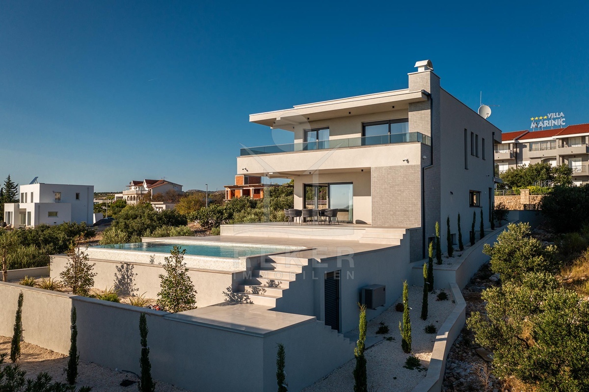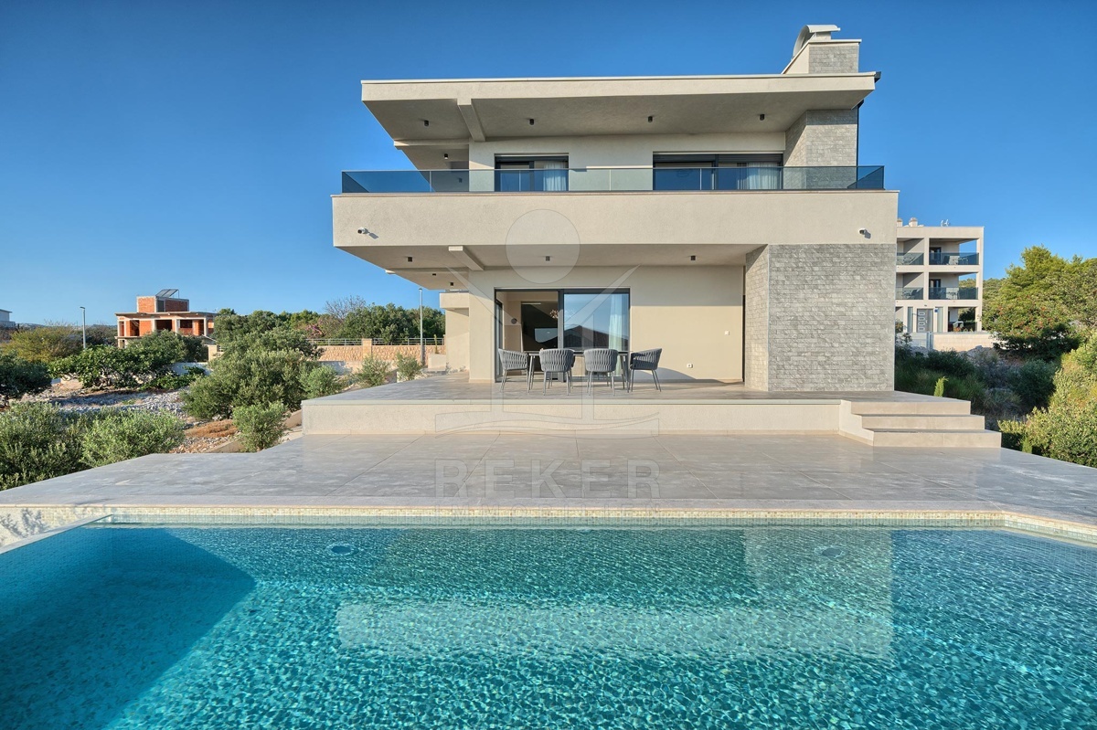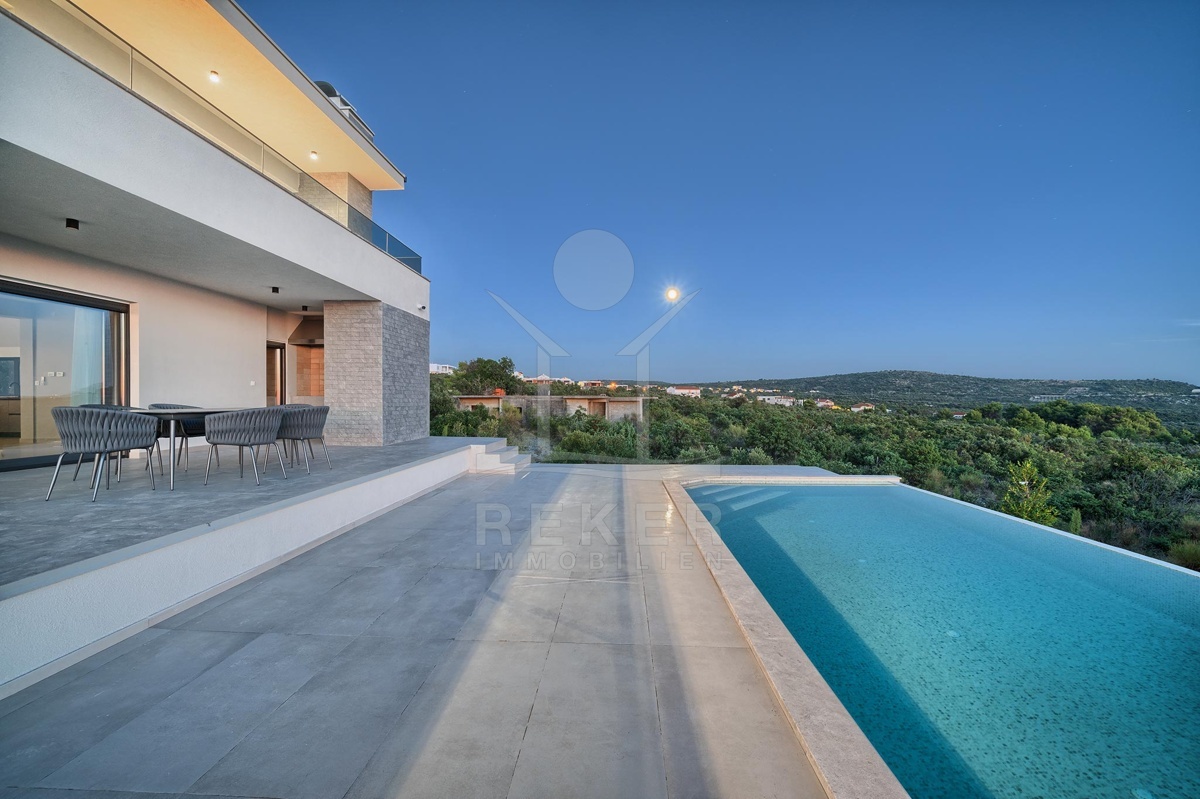 Diese Neubau-Villa verbindet modernes Design, hohen Wohnkomfort und eine privilegierte Lage. Ein elegantes Zuhause an der dalmatinischen Küste. Besonders interessant für Familien und Ruhesuchende.