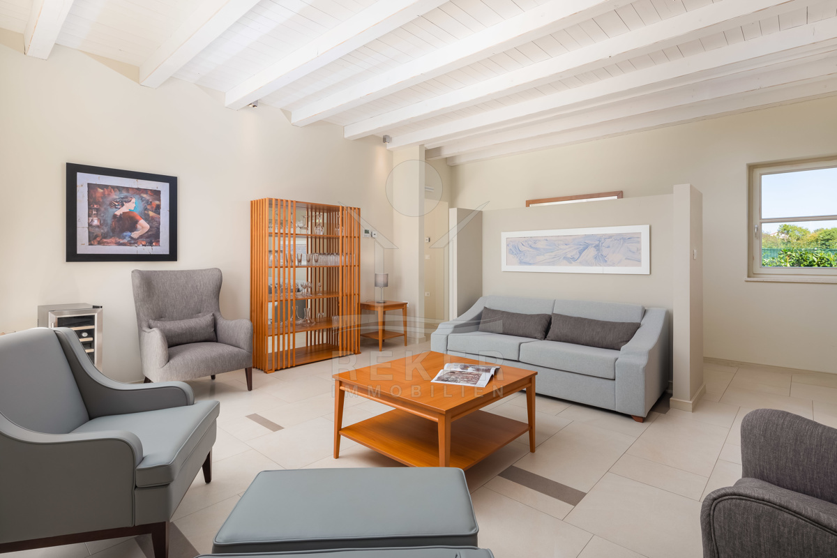 Die exklusive Luxusvilla liegt in Režanci, einer idyllischen istrischen Gemeinde nahe der mittelalterlichen Stadt Svetvinčenat. Hier, umgeben von einer friedlichen ländlichen Umgebung, können Sie Ruhe und Erholung pur genießen. Die Villa bietet nicht nur höchsten Wohnkomfort, sondern auch eine atemberaubende Landschaft, die zum Träumen einlädt. In nur 22 Autominuten erreichen Sie das pulsierende Pula, wo antike Sehenswürdigkeiten und lebendige Atmosphäre auf Sie warten. Darüber hinaus sind die Strände von Rabac und der Hafen von Rovinj nur eine kurze Fahrzeit entfernt und laden zu entspannten Tagen am Meer ein. Die Region ist bekannt für ihre vielfältigen Strände, Spitzenweine und die schmackhafte Küche, die Ihren Aufenthalt unvergesslich machen. Dank der guten Infrastruktur und der Nähe zu den europäischen Nachbarländern ist Istrien eine der beliebtesten Urlaubsregionen Kroatiens. Erleben Sie die Schönheit und Vielfalt von Istrien, angefangen bei kristallklarem Wasser über malerische Küstenstädte bis hin zur herzlichen Gastfreundschaft der Einheimischen. Ob Kultur, Sehenswürdigkeiten, Wassersport oder Wanderungen - hier gibt es für jeden etwas zu entdecken und Langeweile kommt garantiert nicht auf.
