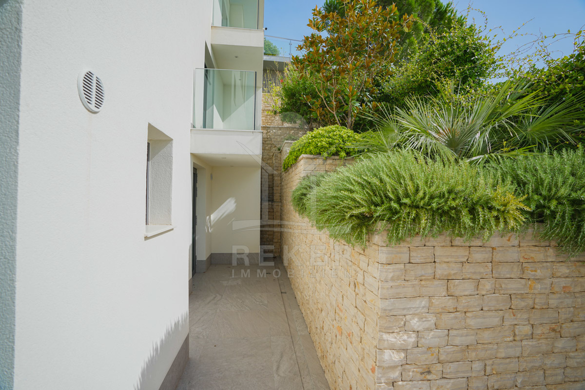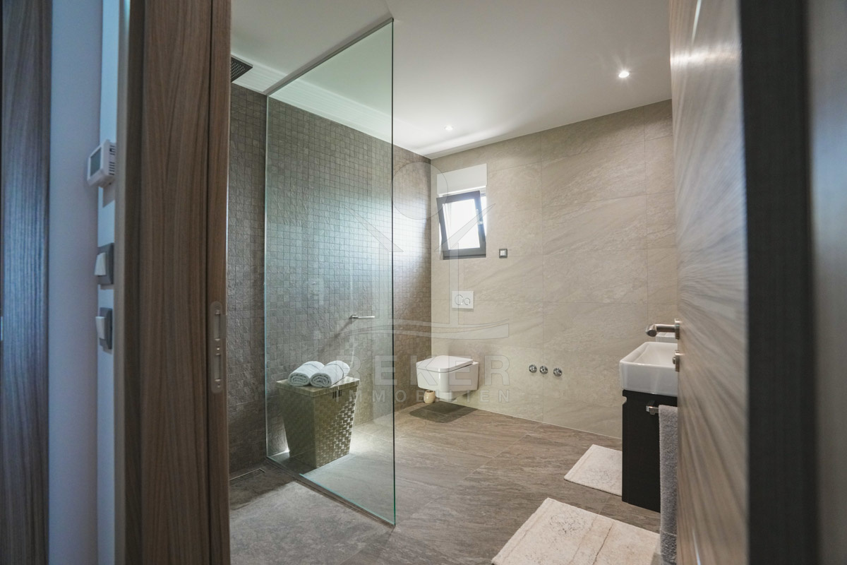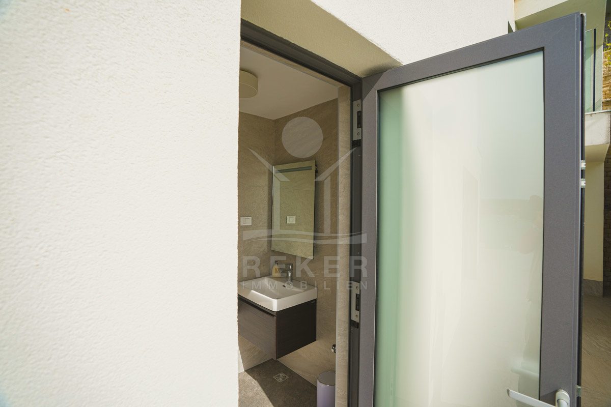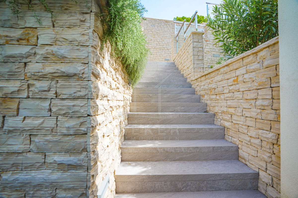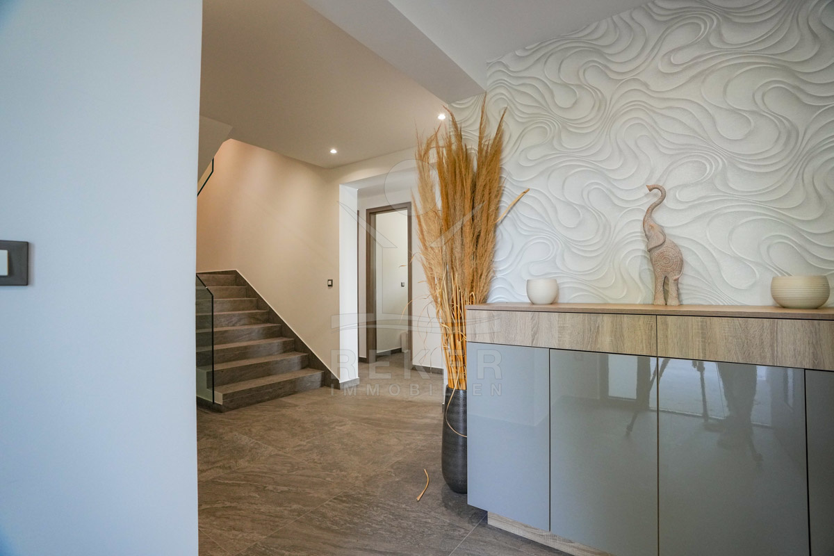 Das Anwesen und bietet auf einem 592 m² großen Grundstück am Hang pure Eleganz und erstreckt sich auf 3 Ebenen mit insgesamt 340 m² Wohnfläche. Die Verwendung von hochwertigen und edlen Materialien sowie Ausstattungsmerkmalen wie Solaranlage und Aufzug heben diese Villa von anderen ab. Genießen Sie den atemberaubenden Blick auf das Meer und die umliegende Umgebung von jeder Etage aus.