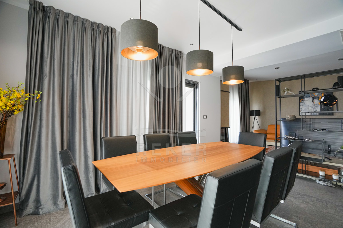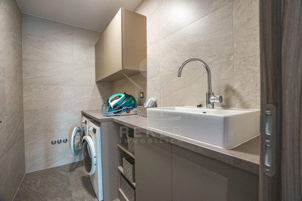 Die Villa ist mit einer Klimaanlage ausgestattet und wird mit exklusiven Möbeln angeboten. Im Untergeschoss befinden sich eine geräumige Garage und der Heizungsraum.