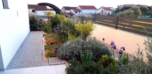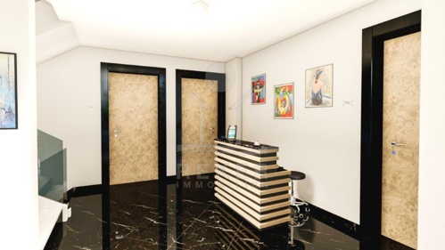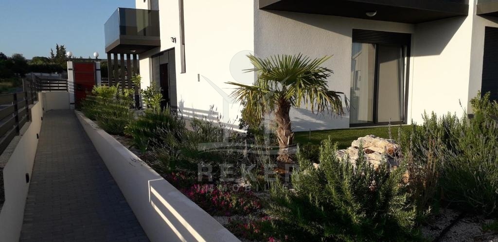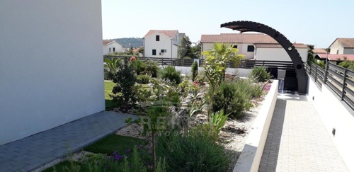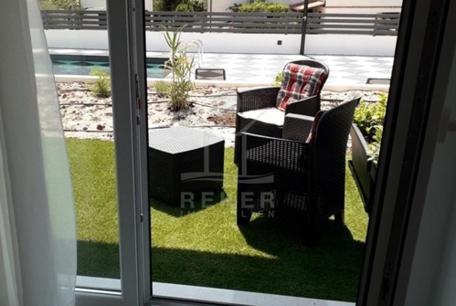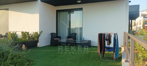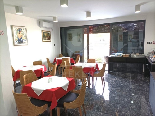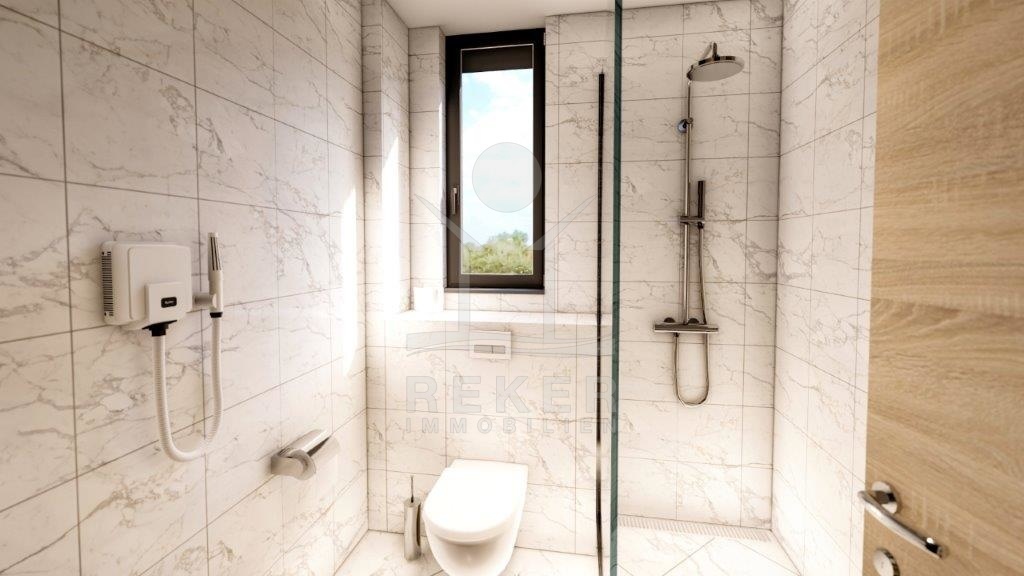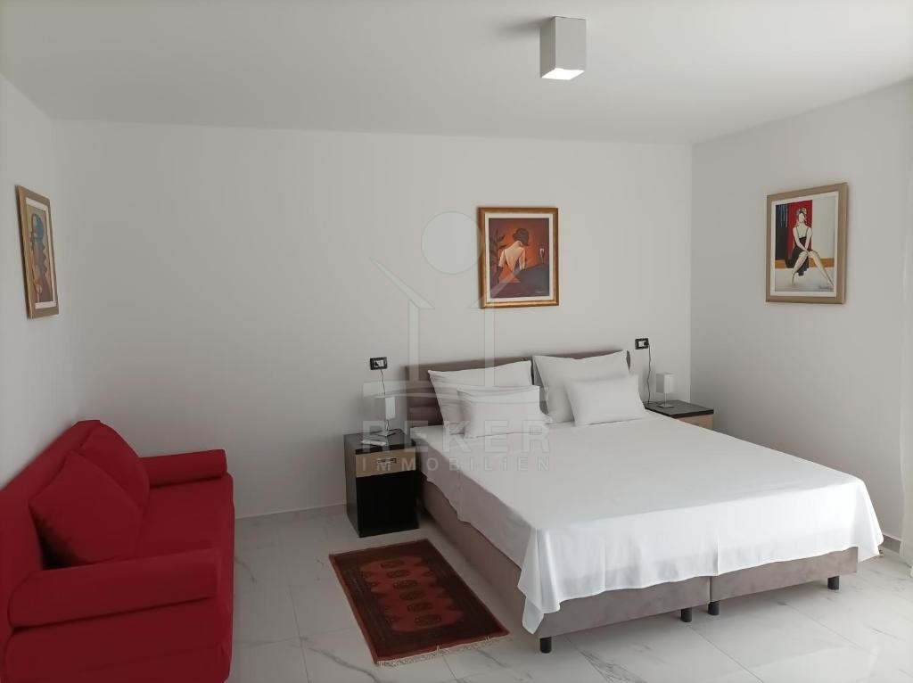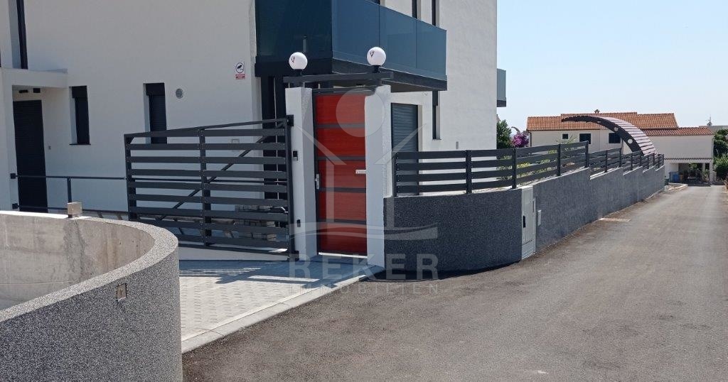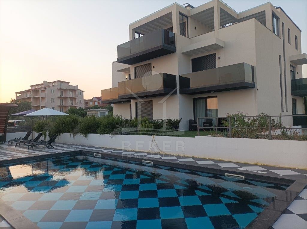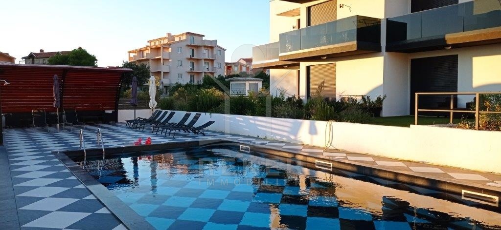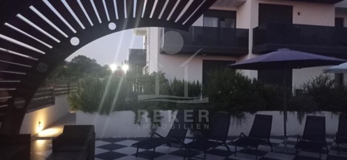 Eine großzügige Terrasse lädt die Bewohner ein, das wunderschöne kroatische Sonnenlicht und Klima zu genießen. Der Außenbereich verfügt über einen beeindruckenden Swimmingpool mit einem stilvollen Karomuster und einer Größe von 54 m². Hier finden Sie ausreichend Liegeplätze, um sich zu entspannen und die Sonne zu genießen. Mit dieser herrlichen Terrasse und dem Pool steht einem entspannten Leben im Freien nichts im Wege. Die Garage des Apartmenthauses bietet außerdem Platz für 10 Autos, sodass für ausreichend Parkmöglichkeiten gesorgt ist.