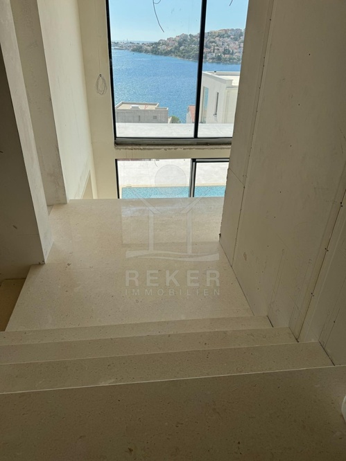 Diese exklusive Villa in Rogoznica spricht Käufer an, die Ruhe, Privatsphäre und Meerblick in einem hochwertigen Umfeld suchen. Sie wohnen hier in prestigeträchtiger Adresse, nur 85 m vom Meer entfernt. Die westliche Ausrichtung bringt schöne Abendstimmungen. Der freie Meerblick verleiht dem Haus zusätzliche Qualität. Dazu kommt das gute Gefühl, Teil eines architektonisch gestalteten Ensembles mit nur fünf Villen zu sein. Drei private Stellplätze auf dem Grundstück und die schnelle Verbindung mit 25 km zum Flughafen Split sowie 35 km ins Zentrum von Split machen die Immobilie im Alltag und auch für die Vermietung sehr interessant.