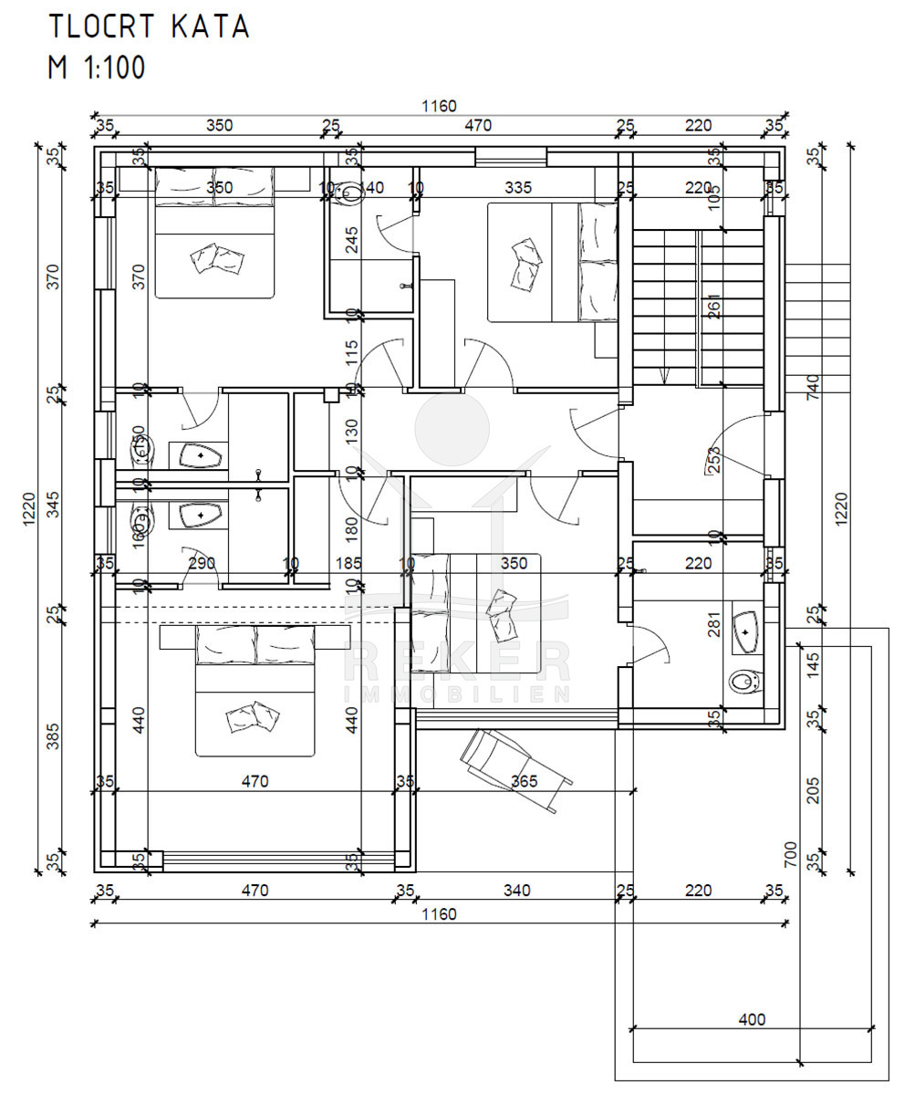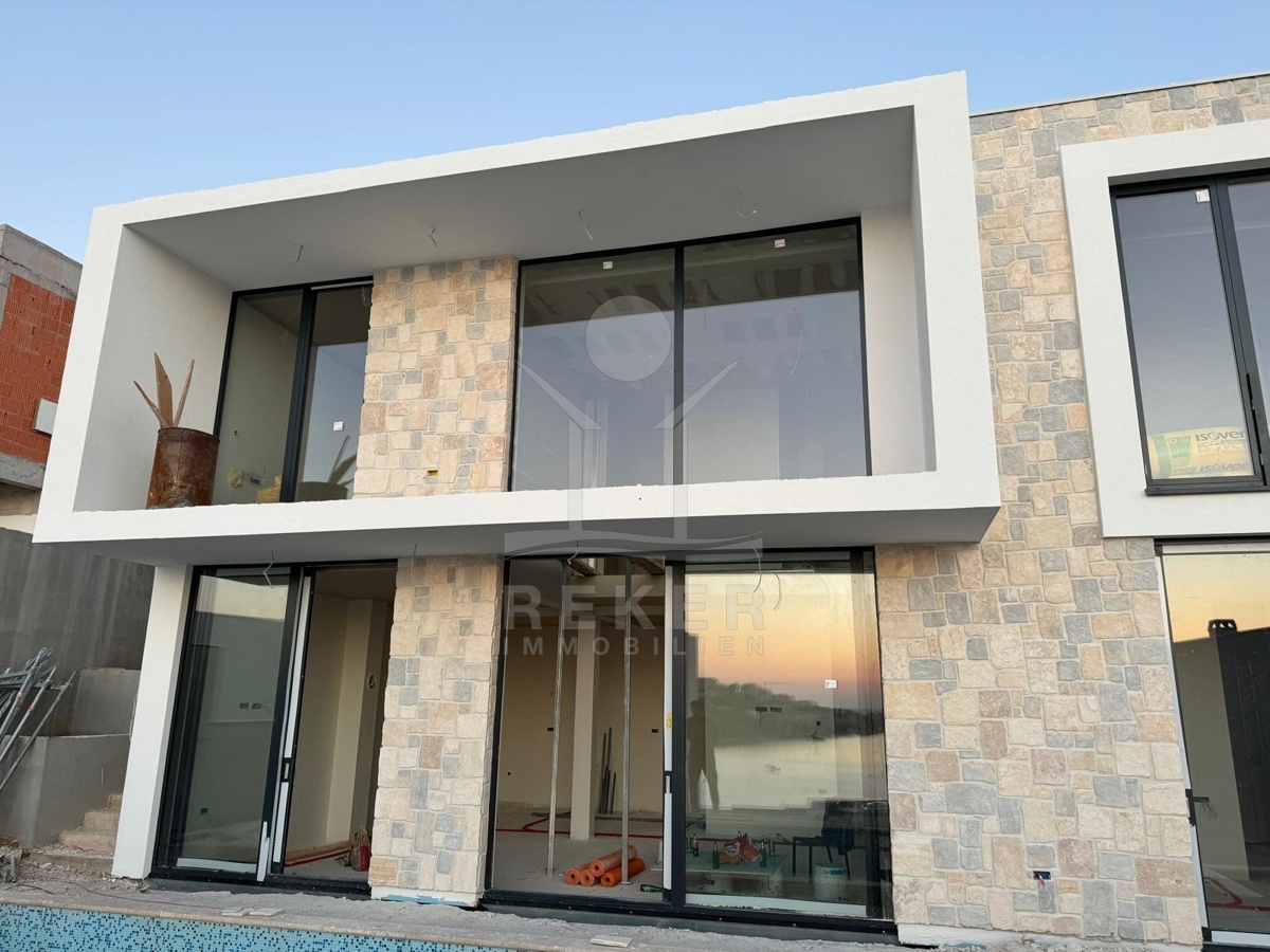 Im Obergeschoss erwarten Sie drei komfortable Schlafzimmer, jeweils mit eigenem Bad und Zugang zum Balkon. Hochwertig ausgewählte Materialien, moderne Luxusausstattung, Klimaanlage und der Neubaucharakter runden das Angebot stimmig ab. So eignet sich die Villa als stilvoller Hauptwohnsitz und zugleich als interessante Investition für die touristische Vermietung.