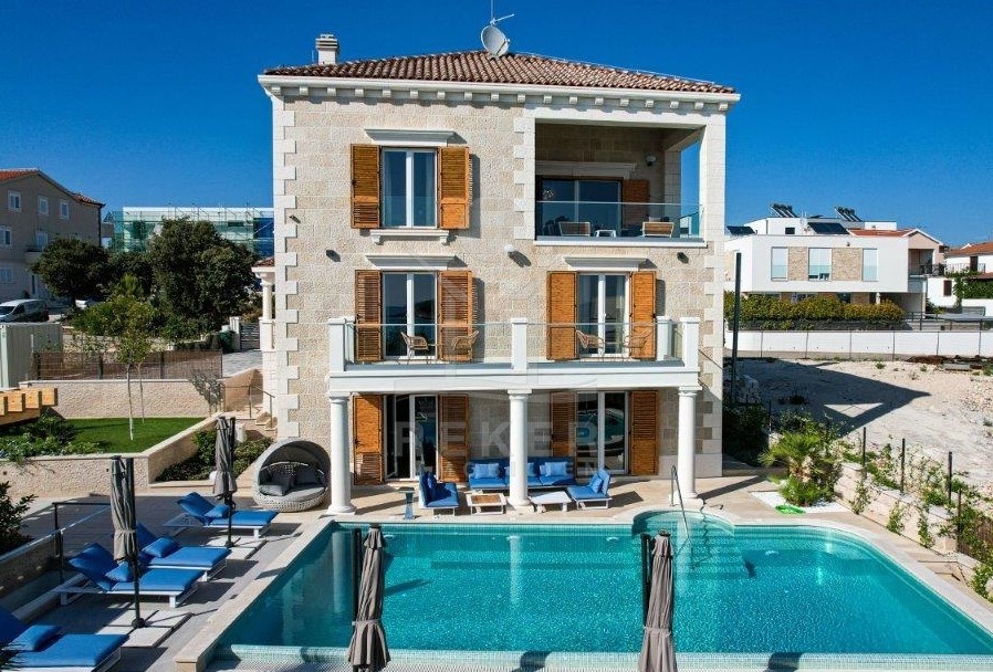 Die Luxus-Villa wird Sie auf insgesamt 4 Stockwerken begeistern. Mehrere Balkone bilden Ihre neuen Lieblingsorte, auf denen Sie einen überwältigenden Ausblick auf das malerische Meer genießen können.