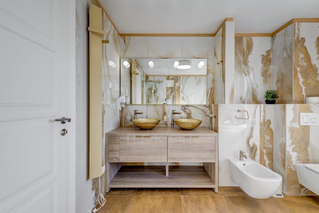 Herzlich Willkommen in Ihrem neuen Wohnparadies! Freuen Sie sich auf einen hauseigenen Fitnessbereich im Keller und Ihre private Wellness-Oase im Erdgeschoss. Hier finden Sie 2 Saunen, einen Massagebereich und einen Jacuzzi. Traumhafte Verwöhnmomente erwarten Sie hier! Komplettiert wird das Erdgeschoss durch eine Küche mit direktem Zugang zum Poolbereich.
