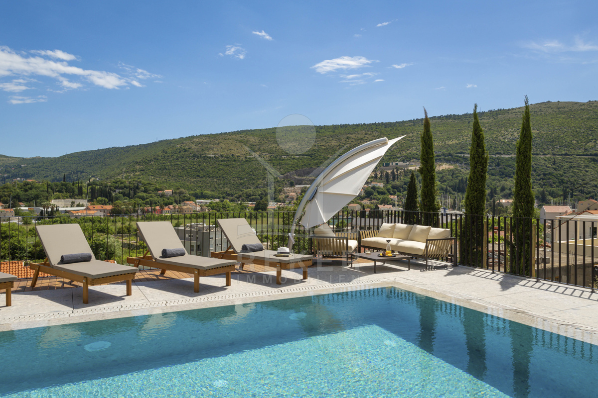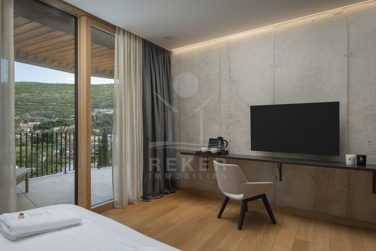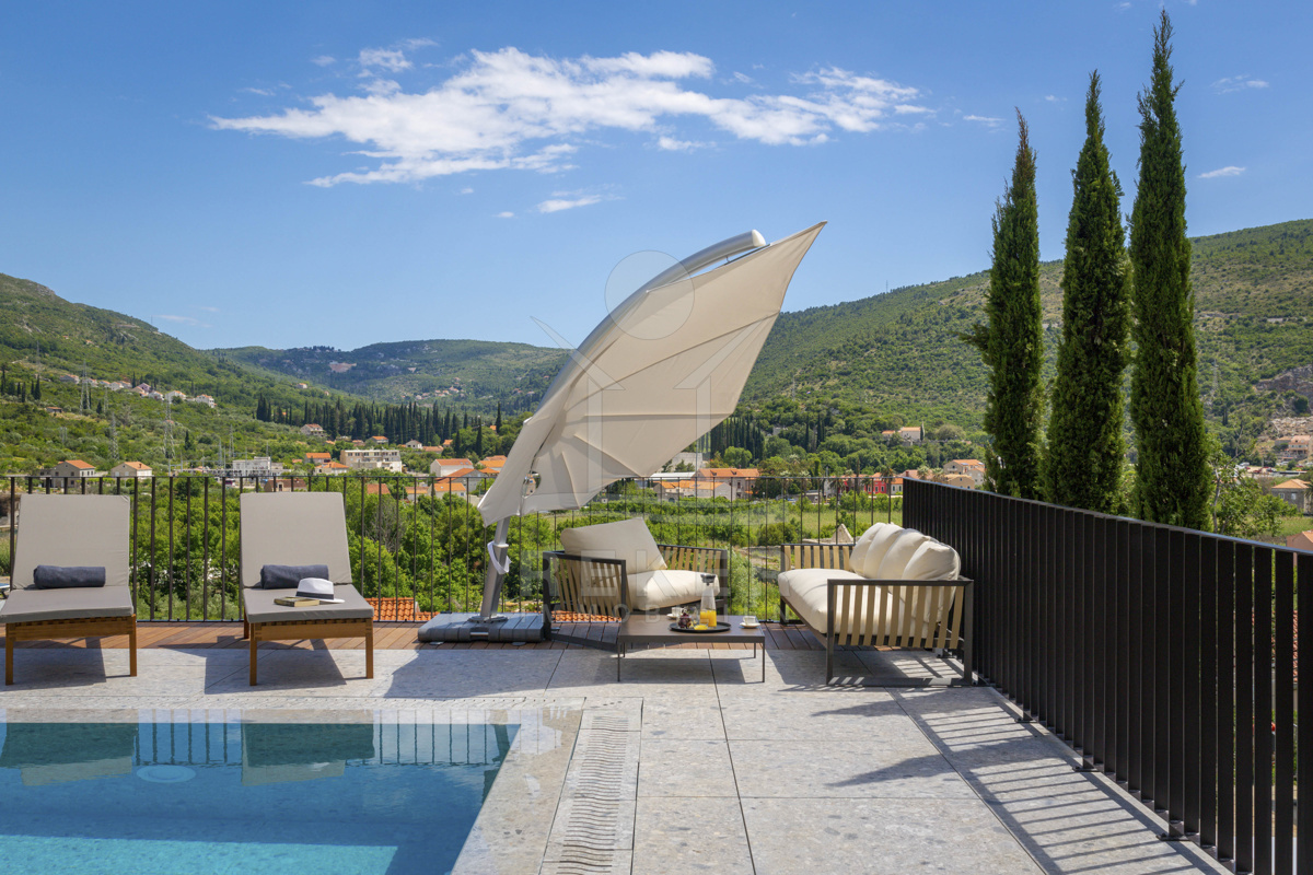 Die Luxus-Villa befindet sich in einer hervorragenden Lage, eingebettet in die sanften Hügel von Rožat. Nur 6 Kilometer von der Altstadt von Dubrovnik entfernt, genießen Sie hier die Ruhe und Schönheit der Natur und sind zugleich in unmittelbarer Nähe zu einer der beeindruckendsten historischen Städte Europas. Die Villa bietet einen atemberaubenden Ausblick auf die Landschaft und die umliegenden Hügel. Sie können sich in der Privatsphäre Ihres luxuriösen Anwesens entspannen und von Terrassen und Balkonen aus den Blick auf die malerische Umgebung genießen. Die Lage bietet auch perfekte Voraussetzungen für Aktivitäten wie Wandern, Radfahren oder Spaziergänge durch die Natur.