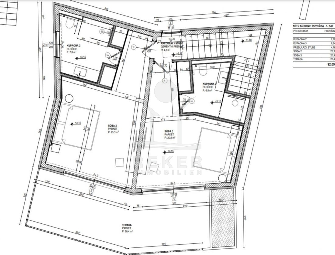 Das Anwesen liegt auf einem 426 m² großen, Hanggrundstück und ist teilweise von einer Steinmauer und einem Zaun umgeben. Das Grundstück bietet einen wunderschönen Ausblick in alle Himmelsrichtungen - Osten, Westen, Norden und Süden. Die Villa erstreckt sich über 3 Etagen und verfügt über eine Gesamtwohnfläche von 170 m². Sie wurde im Jahr 2020 gebaut und ist mit einer Sicherheitstür sowie einem Untergeschoss ausgestattet. Die Villa strahlt eine mediterrane Atmosphäre aus und versprüht einen einzigartigen Charme.