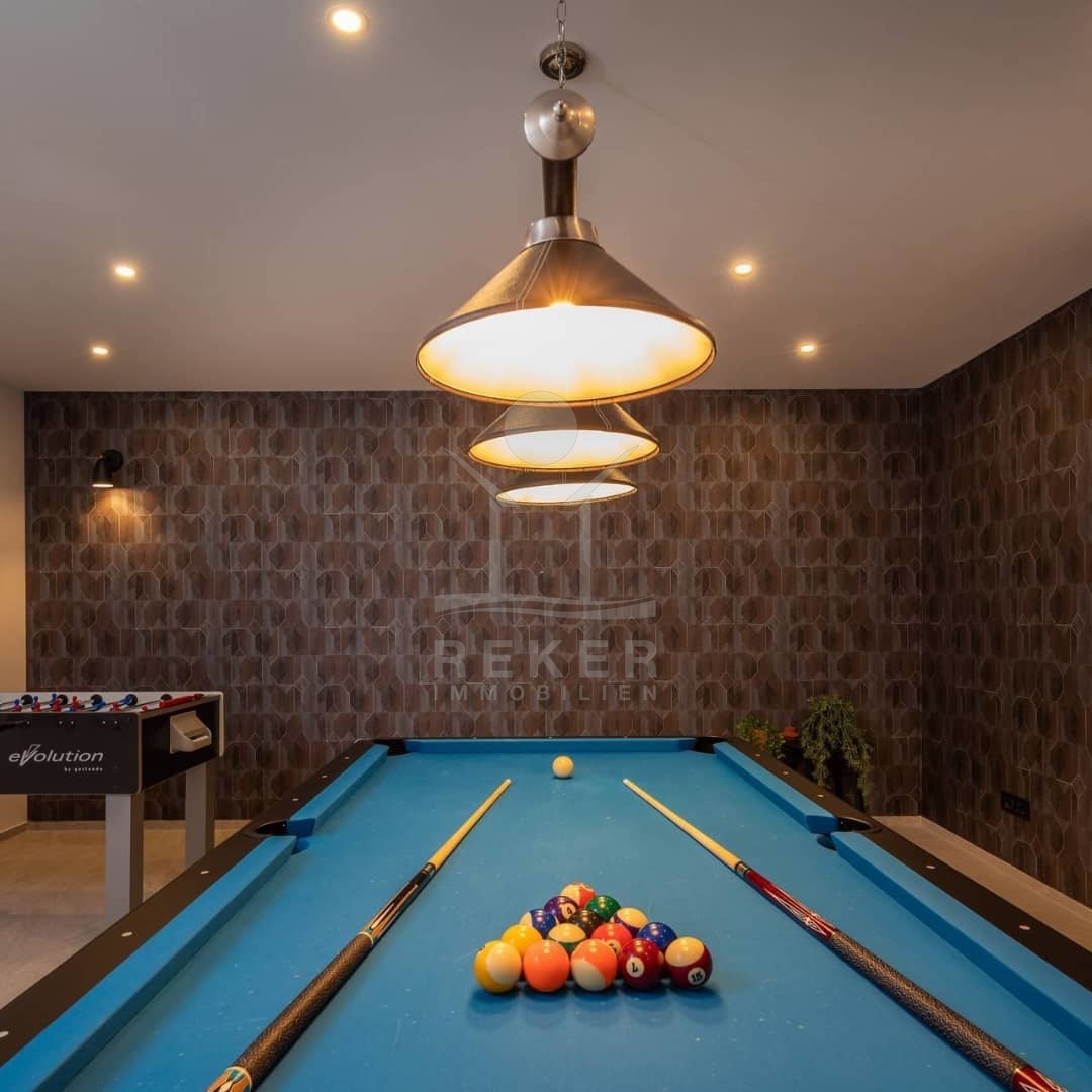 Ein Fitnessraum ermöglicht es Ihnen, sich auszupowern, ohne ins Fitnessstudio fahren zu müssen. Erfreuen Sie sich an freudiger Harmonie, während Sie mit Ihren Liebsten Tischtennis, Billard, oder Tischfußball spielen. Die gesamte Villa wird mit absoluter Stilsicherheit eingerichtet verkauft. Eine Waschküche komplettiert diese einmalige Luxus-Immobilie.
