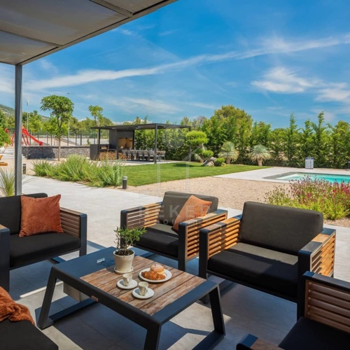 Freuen Sie sich auf ein sagenhafte 6.500 m² großes Grundstück und eine großzügige Wohnfläche von ca. 350 m², die sich auf 2 Stockwerke verteilt. Die lange Liste an Highlights beginnt mit der fabelhaften Dachterrasse, die durch einen Jacuzzi bereichert ist. Erleben Sie hier traumhafte Verwöhnmomente mit zauberhaftem Ausblick!