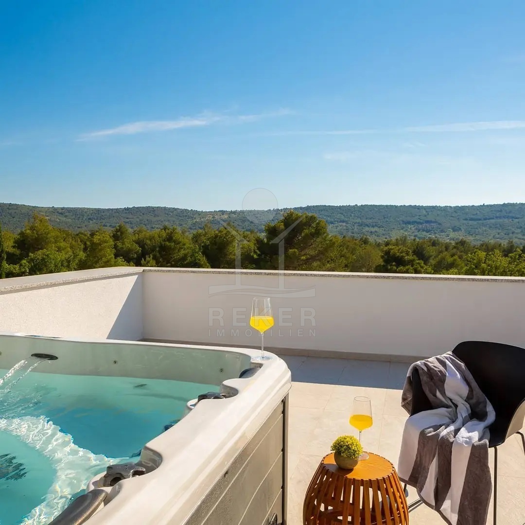 Dieses spektakuläre Wohnparadies befindet sich in einer ruhigen Gegend von Dubrava, 7 Kilometer östlich von Sibenik, neben einem wunderschönen Wald. Ruhe und Privatsphäre sind Ihnen hier sicher, sodass Sie endlich das friedliche Luxus-Leben genießen können, nach dem Sie sich schon so lange sehnen!