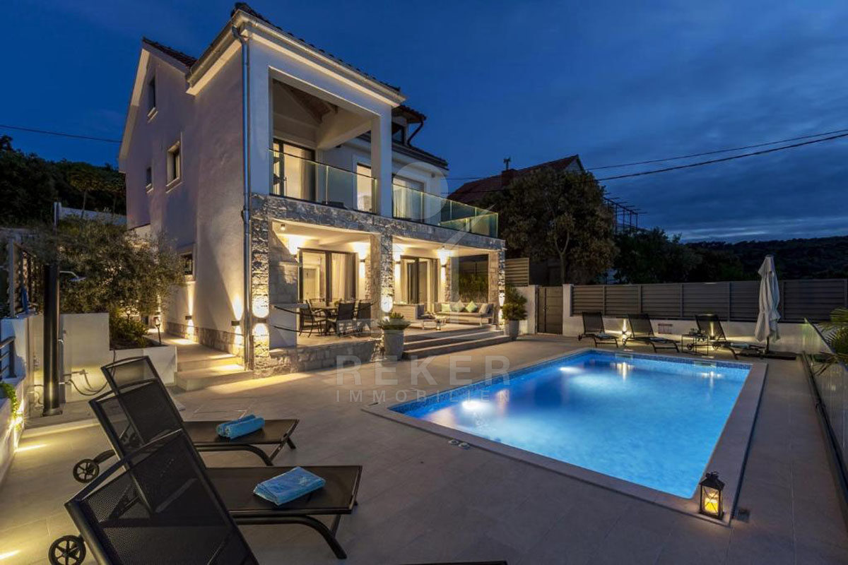 EXKLUSIVES INSELLEBEN: LUXUSVILLA MIT WHIRLPOOL, BEHEIZTEM AUSSENPOOL & PANORAMA-MEERBLICK AUF SOLTA