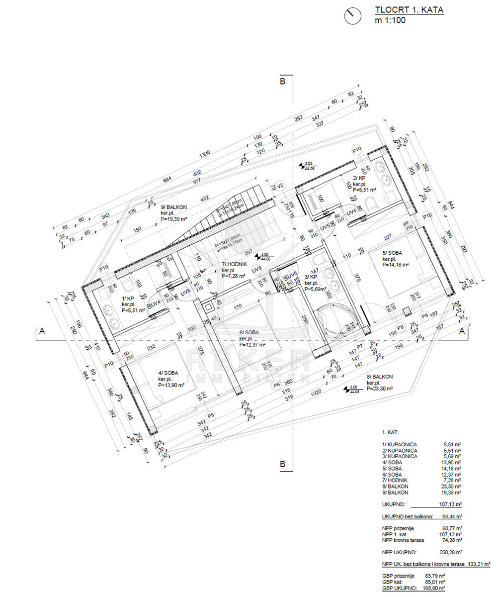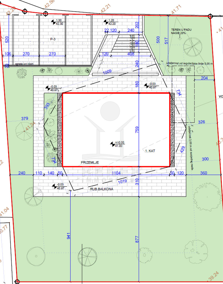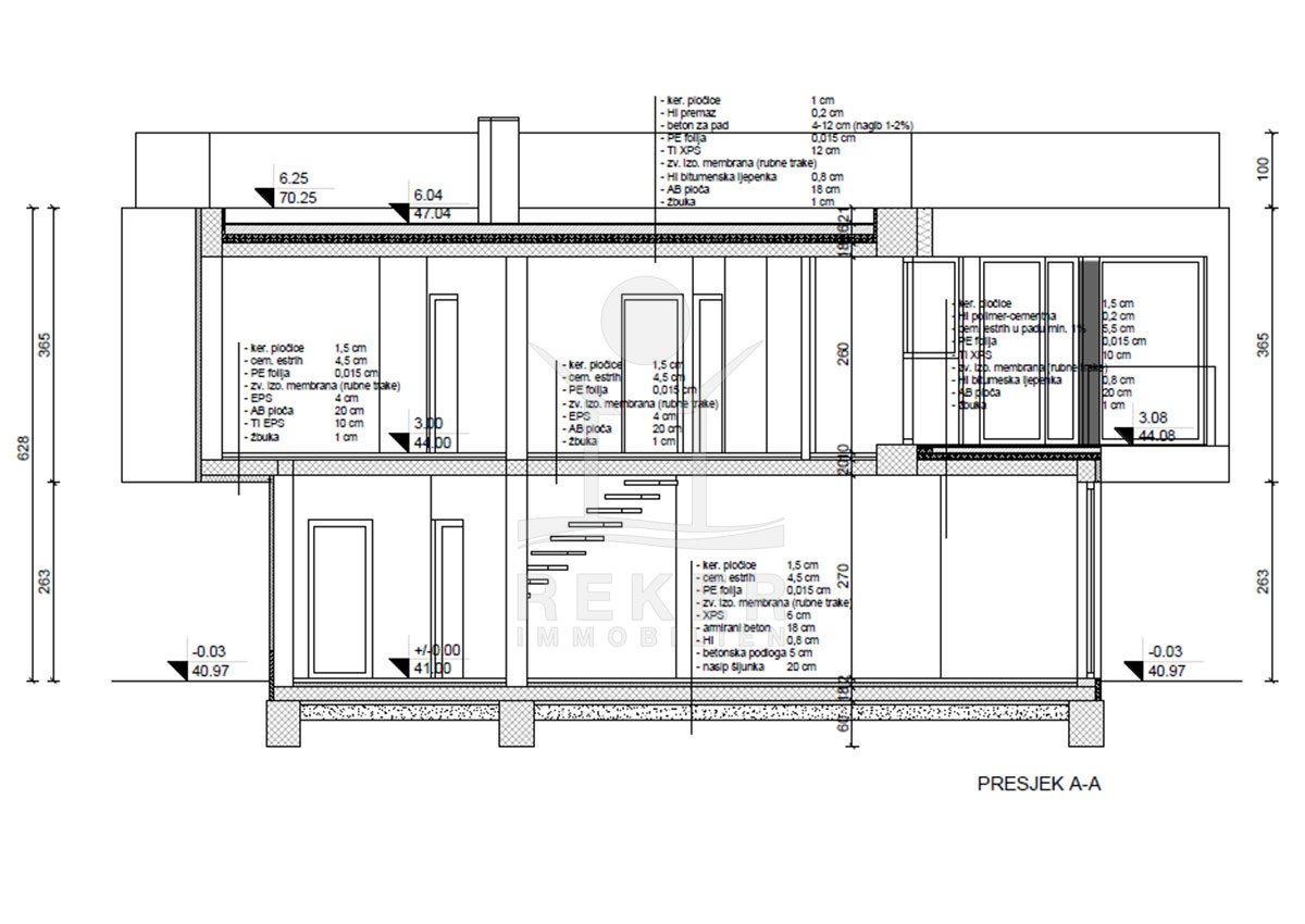 Die Außenbereiche der Villa werden zu einer wahren Oase der Erholung und Entspannung gestaltet. Der Swimmingpool und die überdachte Terrasse eignen sich ideal zum Entspannen und bieten gleichzeitig Platz für gesellige Zusammenkünfte. Darüber hinaus wird auf der Nordseite des ersten Stocks ein weiterer großer Balkon errichtet, von dem aus eine Außentreppe zur Dachterrasse führt, die einen herrlichen Blick auf das Meer und die umliegende Landschaft bietet. Mit mehreren Parkplätzen, einschließlich überdachter Optionen, ist diese Villa ein Ort, an dem man bleiben und das mediterrane Küstenleben in vollen Zügen genießen möchte.