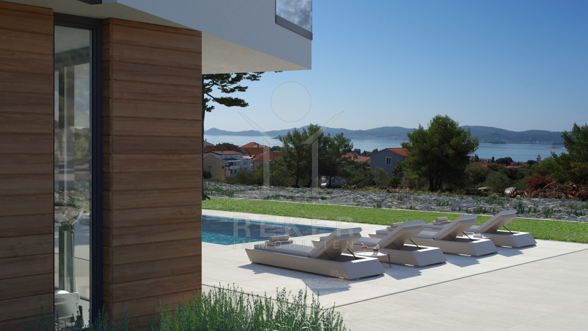 Die moderne Neubau-Luxusvilla befindet sich in Sveti Filip i Jakov, in einer exzellenten Lage an der zentralen Adriaküste. Dank der Nähe zu wichtigen Touristenzentren und der malerischen Natur der Kornaten und mittel dalmatinischen Inseln bietet diese Lage hervorragende Möglichkeiten für Wassertourismus. Die Villa liegt in ruhiger Umgebung, dennoch ist das Zentrum des Ortes bequem zu Fuß erreichbar. Das kristallklare Meer ist nur einen kurzen Spaziergang entfernt und lädt zum Entspannen und Erholen ein. Die Gegend besticht zudem durch das neue 5-Sterne-Luxus-Touristenressort im Bau sowie die Attraktion der herzförmigen Liebesinsel Galešnjak, was diese Lage besonders attraktiv macht.