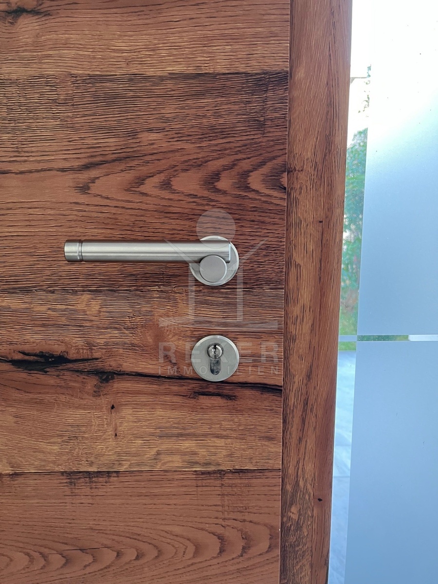 Auf der Südseite öffnen großformatige SUCHO-Alu-Schiebeelemente mit 3-fach-Verglasung den Blick. Die Nord-, Ost- und Westseiten sind mit Internorm Alu-PVC-Fenstern ausgestattet, ebenfalls mit 3-fach-Verglasung, teilweise 4-fach für Raffstores. Heizung und Klimatisierung erfolgen über eine Panasonic-Wärmepumpe in Kombination mit Solar-Warmwasser. Die Stromkosten liegen im Sommerbetrieb bei ca. 450 € pro Monat, im Winterbetrieb bei ca. 150 €. Angenehme Temperaturen sind ganzjährig gegeben, im Winter vor allem über die Fußbodenheizung im Wohnbereich.