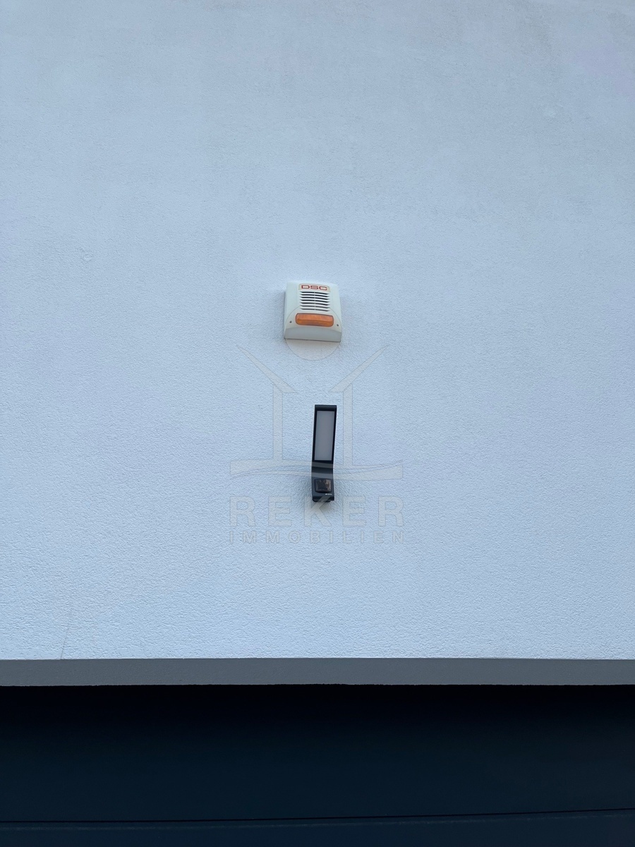 Die Zufahrt erfolgt über eine 3,5 bis 5 m breite Straße, rund 300 m bis zum Tor. Parken ist komfortabel in der Doppelgarage sowie auf dem großzügigen Vorplatz möglich. Das Grundstück umfasst ca. 1.100 m², davon rund 850 m² frei nutzbare Fläche. Es gliedert sich in Gartenbereiche, Wege und klar definierte Zonen mit weißen, abgerundeten Natursteinen. Mittelpunkt des Außenbereichs ist der 48 m² große, beheizte Infinity-Pool mit moderner Salzwasseraufbereitung. Direkt angeschlossen ist ein ca. 150 m² großes Sonnendeck mit rutschhemmenden Porzellanfliesen. Eine elektrische Biopergola mit 12 m² sowie eine Außendusche ergänzen diesen Bereich. Fünf quer verlaufende Stützmauern, mit poliertem weißem Stein verkleidet, folgen der leichten Hanglage mit einer Höhendifferenz von rund 6 m und betonen die Aussicht. Das Areal ist vollständig eingefriedet und über ein Automatiktor zugänglich. Zusätzlich stehen auf der Nord- und Südseite Fußgängertore zur Verfügung. Die Außenbeleuchtung wird per LUXOMAT gesteuert und verbindet Orientierung mit Sicherheit, unterstützt durch 9 Kameras (CCTV) und eine Alarmanlage. Vor der Garage steht eine großzügige Rangierfläche für mindestens drei weitere Fahrzeuge zur Verfügung. Die Liegenschaft ist an einen eigenen Abwassertank angeschlossen, mit 100 mm Leitung und Entleerung per Saugfahrzeug. Der öffentliche Kanalbau ist im Gange und soll im gesamten Quartier bis Ende 2026 abgeschlossen sein.