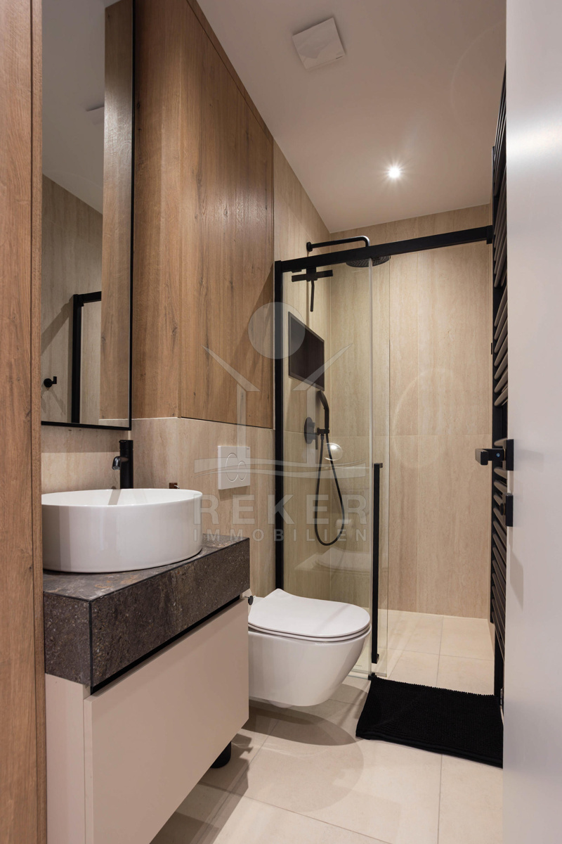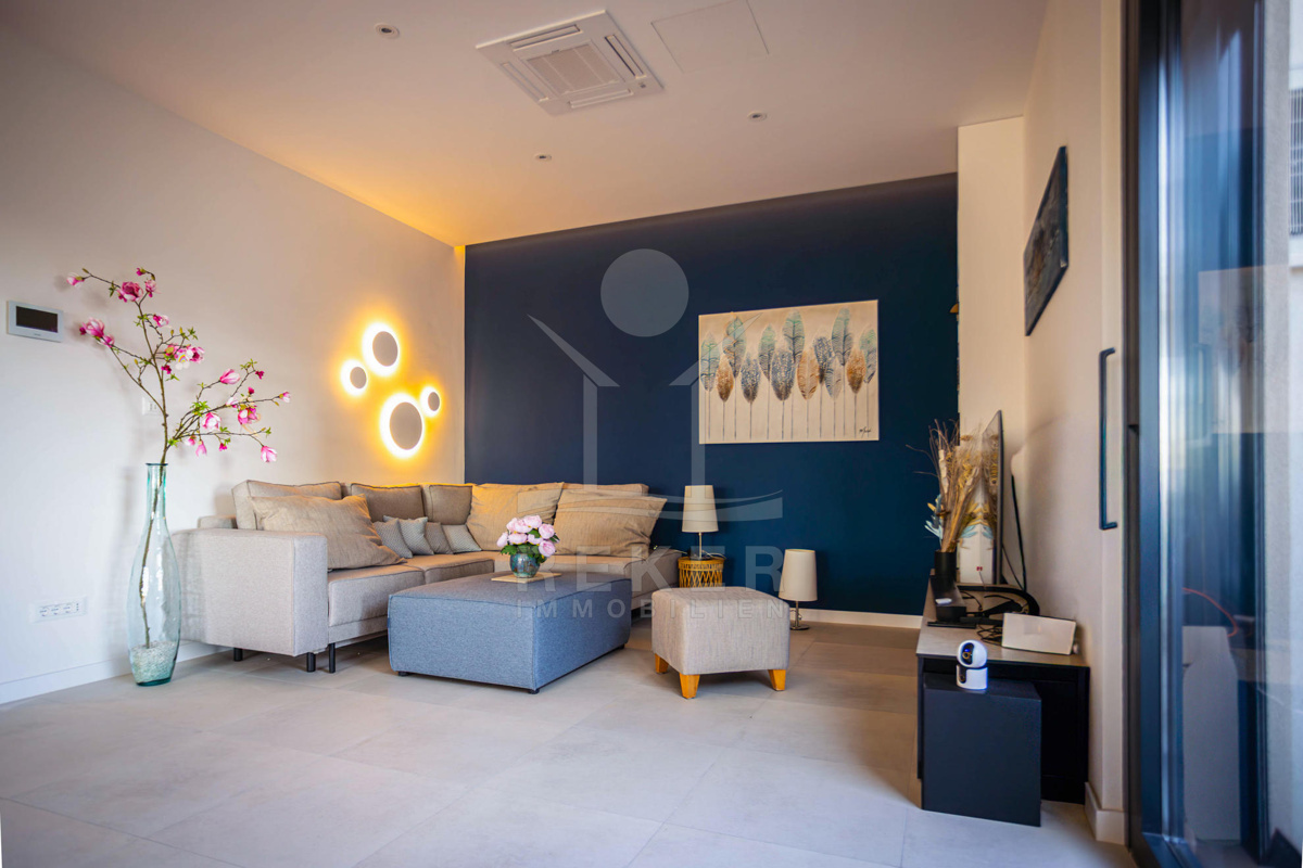 Ein herausragendes Merkmal der Villa ist die zugängliche Dachterrasse mit großzügigen 84 m², die Ihnen einen atemberaubenden Meerblick bietet. Hier werden Sie nicht nur den perfekten Platz zum Grillen und Entspannen finden, sondern auch verschiedene Loungemöglichkeiten, um unvergessliche Momente mit Familie und Freunden zu genießen. Der Außenbereich umfasst zudem einen geplanten Infinity-Pool, eine überdachte Terrasse sowie eine Außendusche und einen Abstellraum für Ihre Möbel. Erleben Sie Sonnenaufgang und Sonnenuntergang wie nie zuvor in diesem traumhaften Wohnparadies.